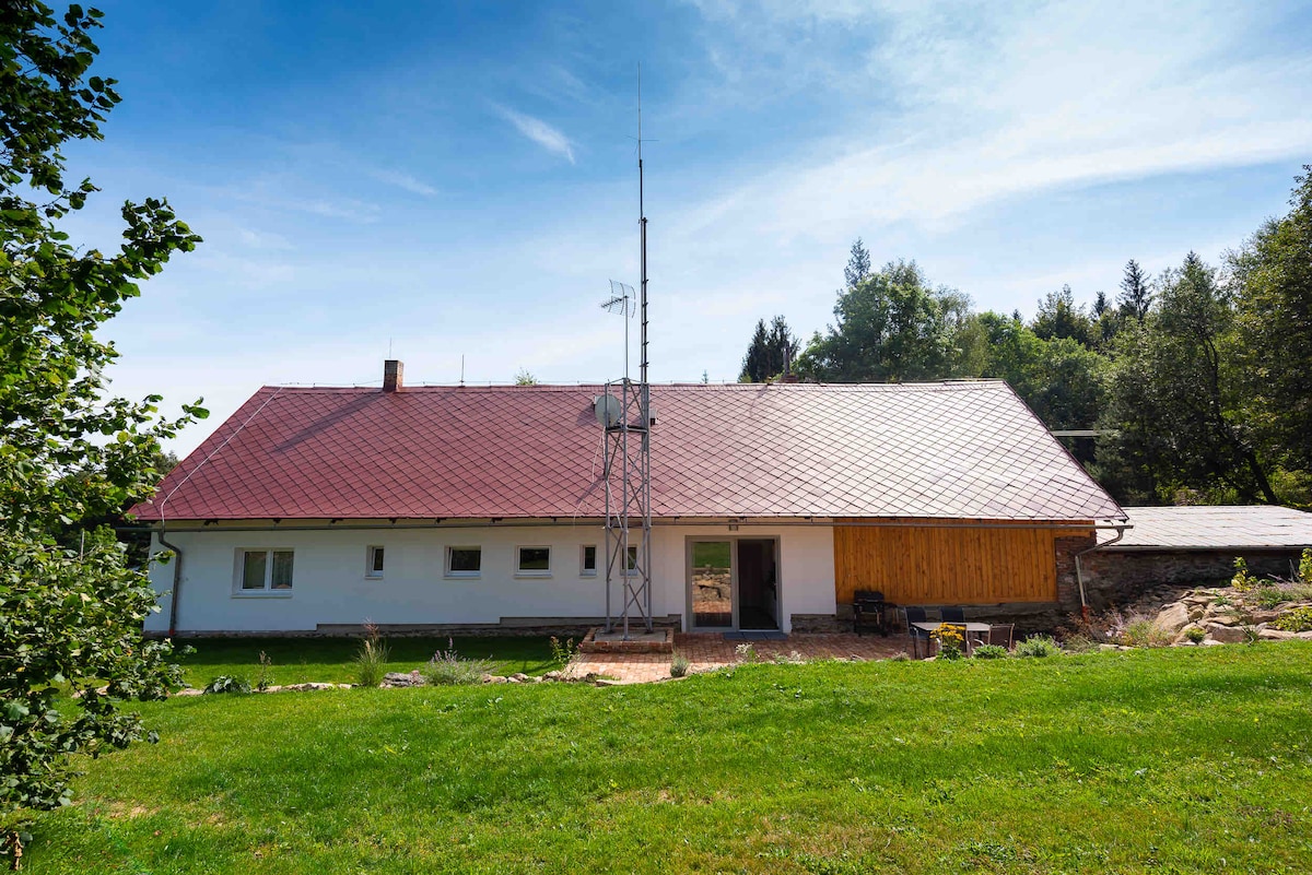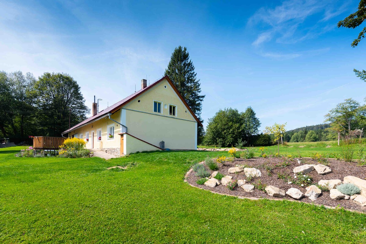Casa con salón y chimenea, junto al bosque, Šumava