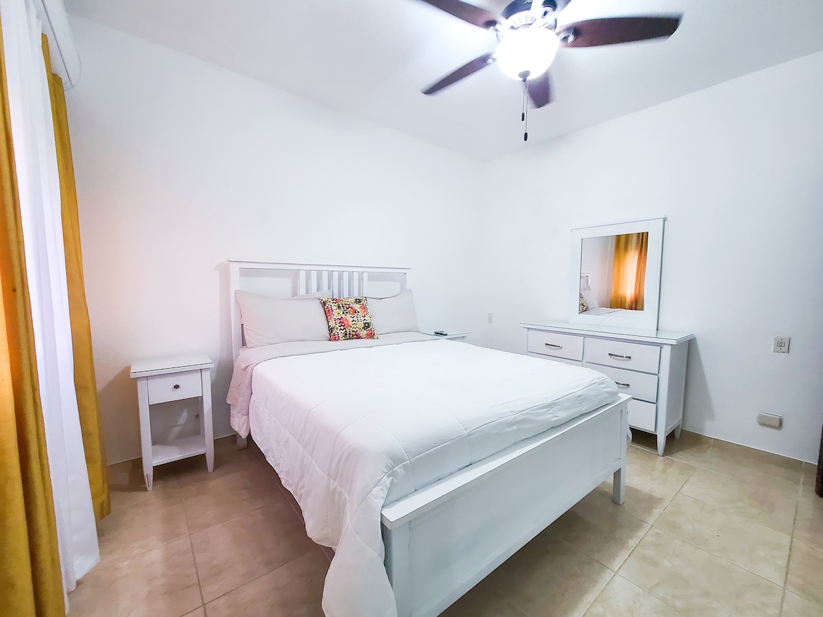 El apartamento es ideal para 2 adultos y 1 niño. Todo el equipamiento es nuevo: cama tamaño queen, sofácama en la sala para 1 niño o adolescente, smart tv, wifi/40 mbps, comedor, amplia cocina, un baño cómodo y espacioso, closet, caja fuerte, terraza muy cerca de la piscina. Está en la zona turística más dinámica de Punta Cana a 500 metros de la playa. Hay gran variedad de restaurantes, casas de cambio y comercios. El consumo eléctrico lo paga el cliente (0,4 US$/kwh).