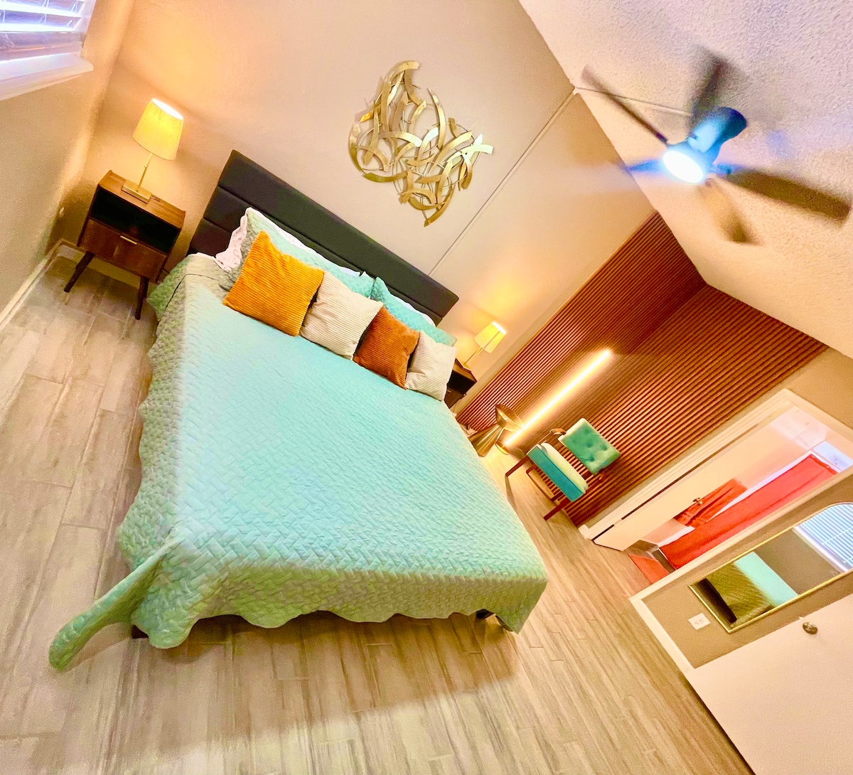 ¡Encuentra comodidad en este nuevo alojamiento en un barrio seguro! Alojamiento con estilo, perfecto para viajes en grupo o en familia. El wifi rápido y un espacio de trabajo lo convierten en el alojamiento perfecto para viajeros de negocios. Espaciosos 3 dormitorios, 2 baños con capacidad para hasta 6 personas. Disfruta cocinando en la cocina gourmet. Acurrúcate junto a la hermosa chimenea de cuarzo blanco o siéntate en el patio para ver las montañas al atardecer.