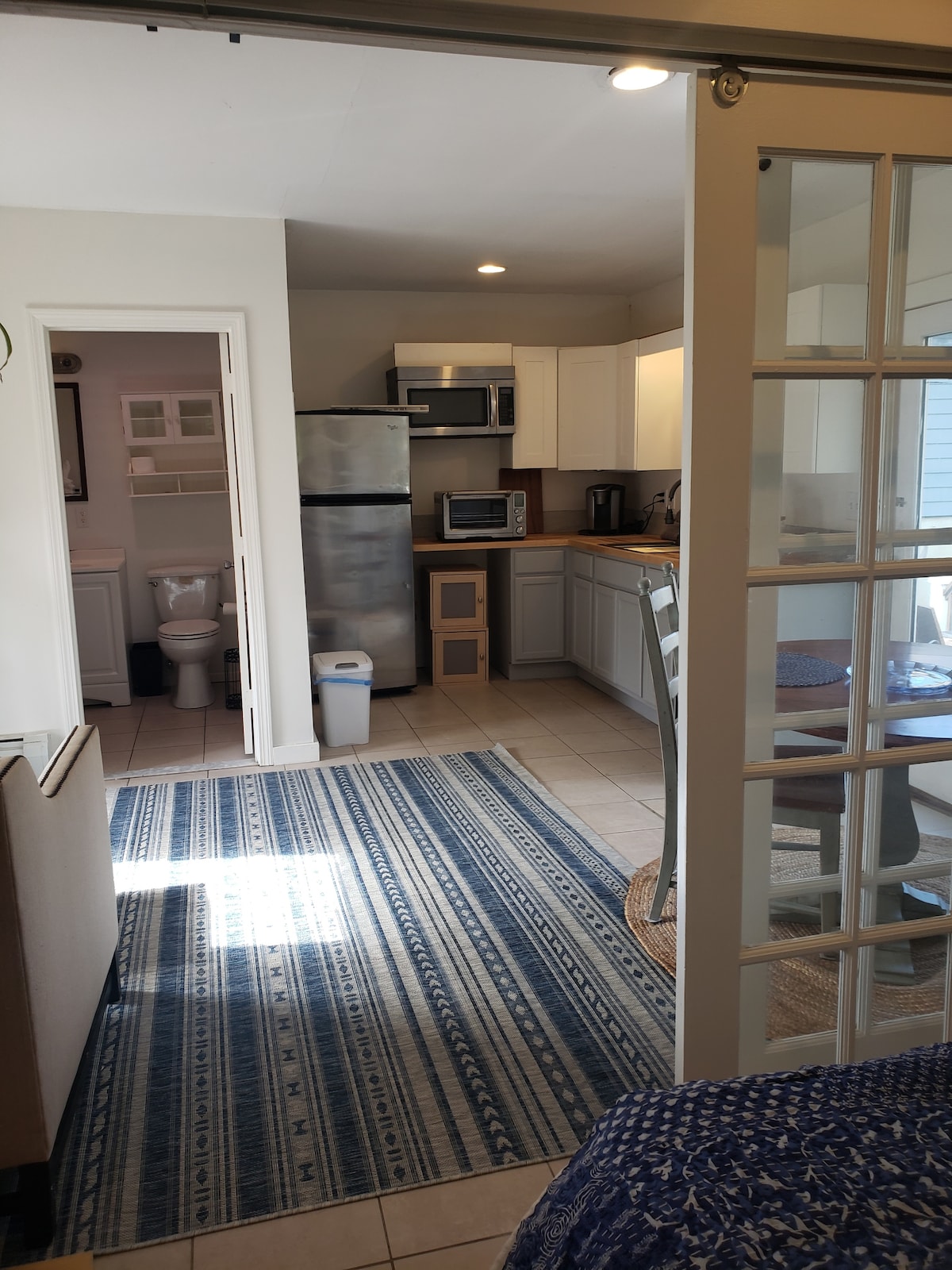 Amplia suite con entrada independiente de dos dormitorios adjunta a la granja de 1700, situada en nuestra pequeña granja de flores y cooperativa de jardín a solo 20 minutos de Boston. A solo una milla de Mass Pike y Rt. 128 (I-95). Ubicado en el centro de todos los negocios, universidades y hospitales de la Ruta 128. A 7 minutos en coche de la parada de metro Riverside Green línea «D» a Boston (estacionamiento disponible) o paradas de tren de cercanías (estaciones Auburndale, Wellesley y Kendal Green). Está a 20 minutos en coche de la estación «Route 128» de Amtrak a Nueva York y puntos del sur.