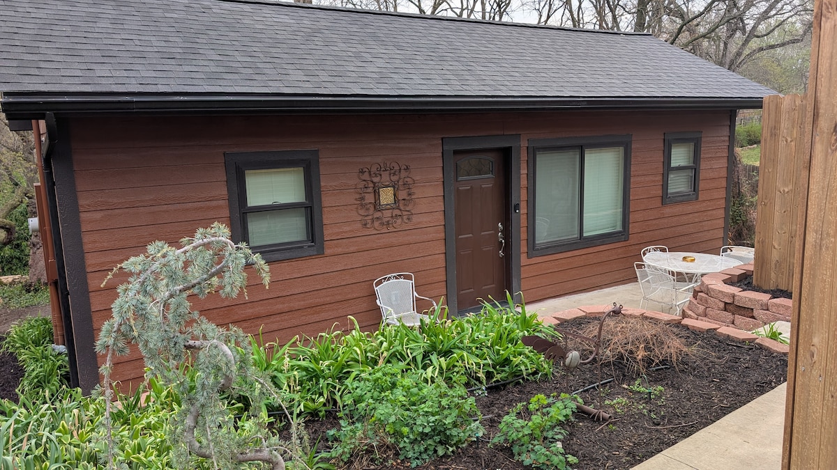 NO CLEANING FEES. Take it easy at this unique and tranquil getaway. Cozy converted barn. Sleeping loft, NOTE: The sleeping loft has a maximum height of 5'1". very short walking distance to MANY bars and restaurants, 3 blocks from Allen Fieldhouse, near K.U. campus, just off K-10 and Hiway 59 junction. Off-street parking. 2 Amazon Fire T. V.'s with Wi-Fi, streaming and antenna T.V. Please Note: A 3rd guest will incur an additional charge of $35.00 A 4th guest is an additional $20.00