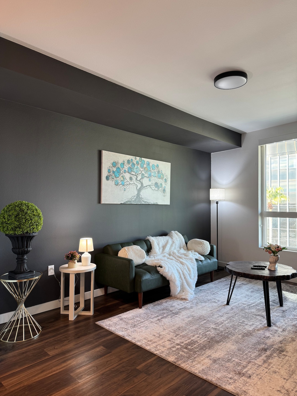 For your next trip to LA, go in the style you deserve with our elegant and spacious condo in the heart of DTLA. Every inch of our home has been meticulously designed to give guests the kind of luxury they can't find elsewhere. From our 12 ft ceilings to our incredibly comfortable canopy bed, our goal is to make it hard for you to want to leave the space and explore everything LA has to offer, such as being walking distance to the LA Convention Center and Crypto Arena. Free Parking Included!