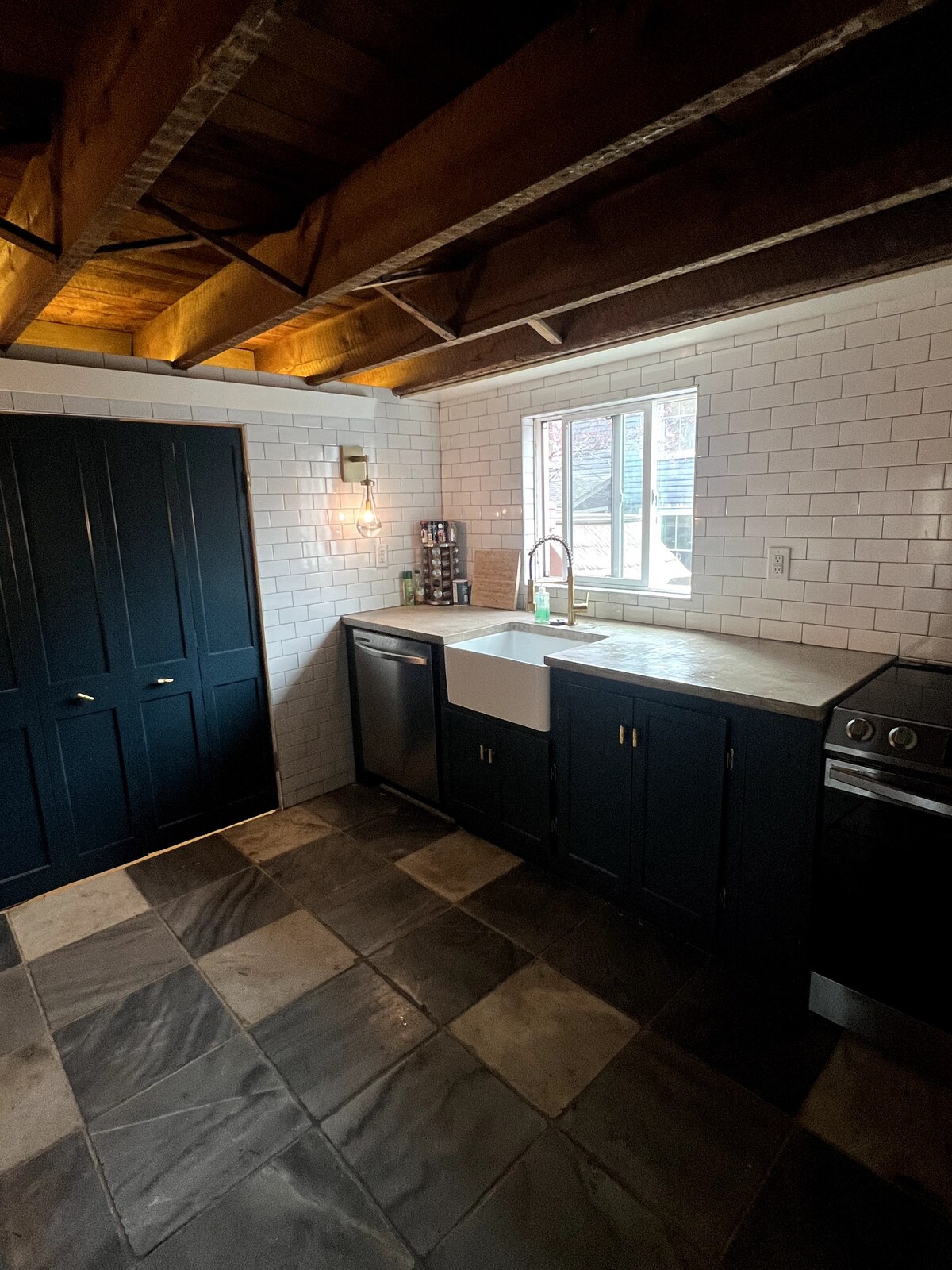 This cozy, newly refurbished, 1 BR/1 Bath, apartment is attached to a historic Charlottesville home. With just a 10 min walk to the Downtown Mall and a short drive to the university hospital/campus, the location is nestled in the heart of C'ville. Special amenities include a Sleep Number bed, fast Wifi, a 50" Smart TV with access to Amazon Prime and Netflix, access to pool use during the summer, and Park Lane street parking. Hand crafted soapstone counters and farm sink, beautiful new tile work.