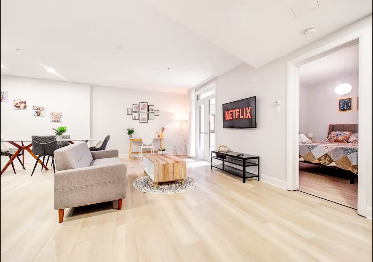 Near Parc Jean-Drapeau and just minutes from old port & downtown Montreal! This high-end, fully renovated apartment offers premium comfort with designer furniture, top-tier appliances, and thoughtful extras like an 86-inch 4K TV with full channels and exclusive guest perks— up to 50% off at Montreal’s top event venues and dinner shows. A stylish, upscale retreat near the city's best attractions! Montréal Grand Prix F1, Old Montreal, Quartier des Spectacles. and the Best Host ever :) the Best.