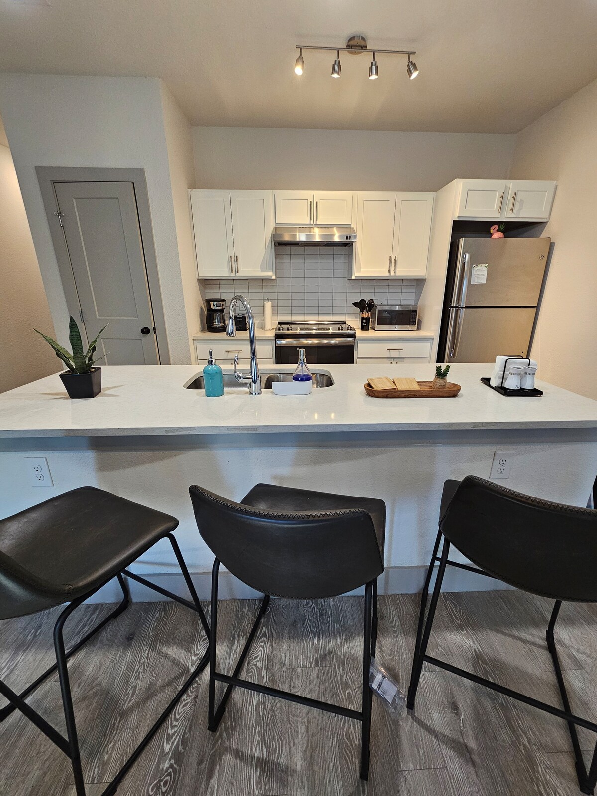 Stay in the heart of San Antonio at this stylish studio located in this comfortable community! Whether you’re here for work, play, or a bit of both, you’ll love the clean, contemporary design and thoughtful amenities that make this space feel like home. What You'll Love: Pool, gym and patio for relaxing Bright, open layout with a comfy king bed and cozy living area Fully equipped kitchen — perfect for home-cooked meals Fast WiFi and a smart TV for work and entertainment