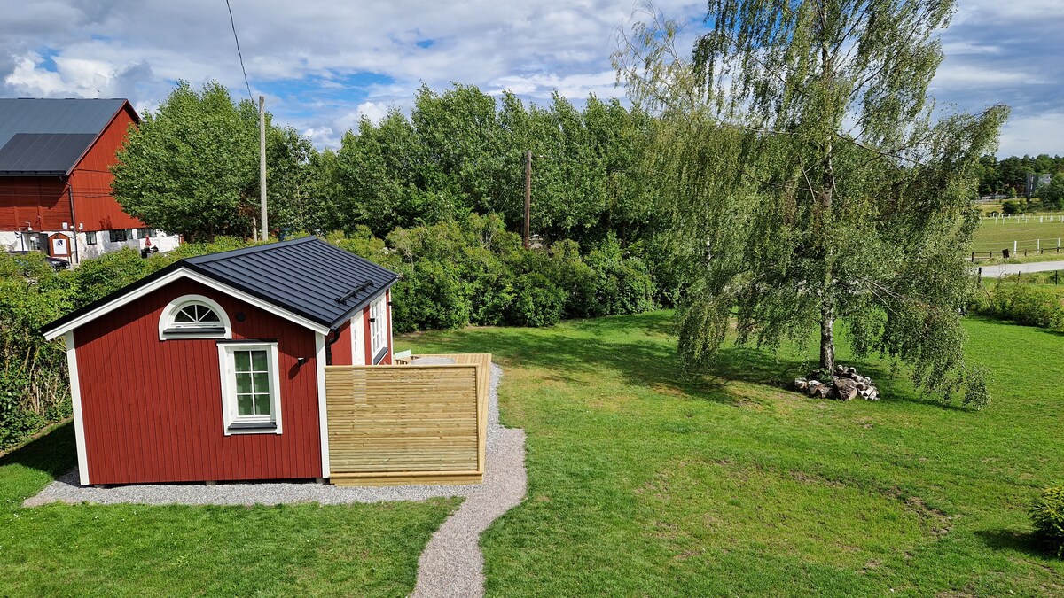 Relájate en esta tranquila y rural casa. La casa está construida en 2021 y cuenta con cocina totalmente equipada, baño con lavadora, loft para dormir con cama doble, sofá cama, bonito porche para desayunar, así como patio en el mejor modo sol. El lago Mälaren y la oportunidad de nadar están a 800 metros, el club de golf Troxhammar está a 300 metros y las hermosas zonas de excursión con bosques para recoger setas y bayas están a la vuelta de la esquina. Parada de autobús a 200 metros de la casa, a unos 30 minutos en coche de la ciudad. Aparcamiento al lado de la casa.