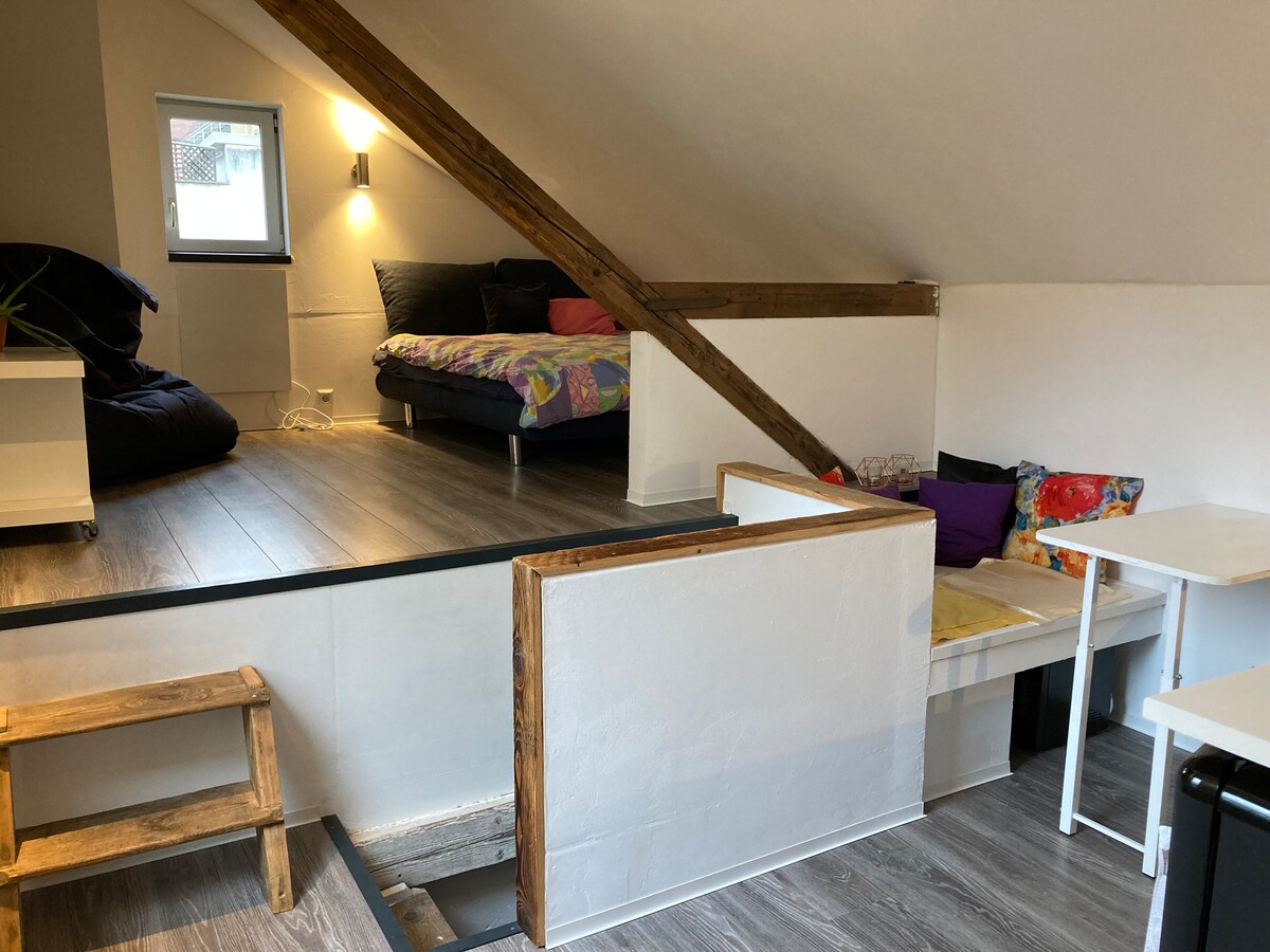 Único, bien renovado, tranquilo, céntrico El edificio central de estilo histórico, frente al hermoso patio interior, se encuentra en el anillo del casco antiguo de Durlach. Todo lo que necesitas para el día a día está a unos minutos a pie. A 2 minutos de Weiherhofbad A 3 minutos de la parada de tranvía/zona peatonal A 3 minutos de Edeka - Departamento dúplex. - ubicación tranquila - Cocina totalmente equipada (lavavajillas, hervidor de agua/huevos) - Inodoro para huéspedes - Loggia - Baño diurno. - Asientos exteriores - Posibilidad de cama supletoria