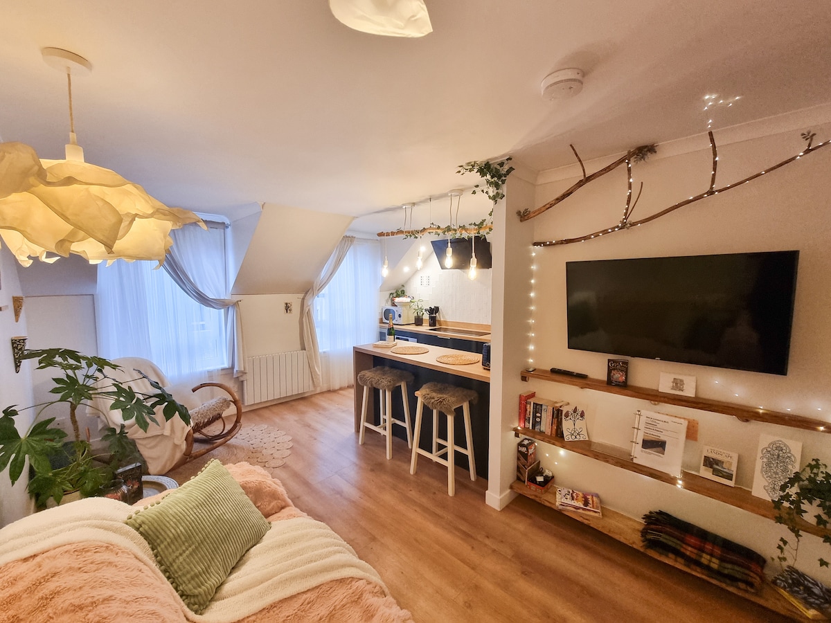 Bienvenido a este pequeño refugio situado en el corazón del histórico casco antiguo de Edimburgo, justo en la famosa Royal Mile. Acomodación: Este apartamento bien equipado ofrece un hermoso refugio en medio del bullicio de la ciudad. El espacio ofrece comodidad y estilo, con comodidades modernas y toques tradicionales que reflejan el carácter del casco antiguo. Relájate en la acogedora sala de estar, cocina en la cocina totalmente equipada y descansa en el acogedor dormitorio después de un día explorando la ciudad.