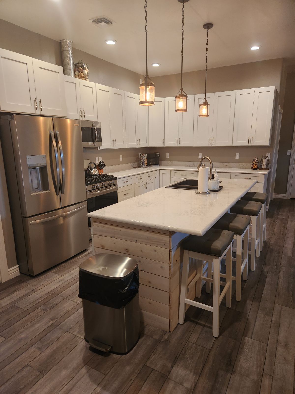 WOW... Este será el primer pensamiento que te entrará en la cabeza cuando entres por la puerta de nuestra cabaña única. Diseñada profesionalmente desde cero, esta cabaña cuenta con lo siguiente: - La cabaña principal tiene tres dormitorios, dos baños y un loft arriba con seis literas con capacidad para 12 personas. - El garaje independiente tiene una sala de juegos y una sala de juegos. - Encima del garaje hay un estudio privado con su propia cocina, baño, cama tamaño king y lavandería con capacidad para dos personas (cargo adicional de 97 dólares por esto).