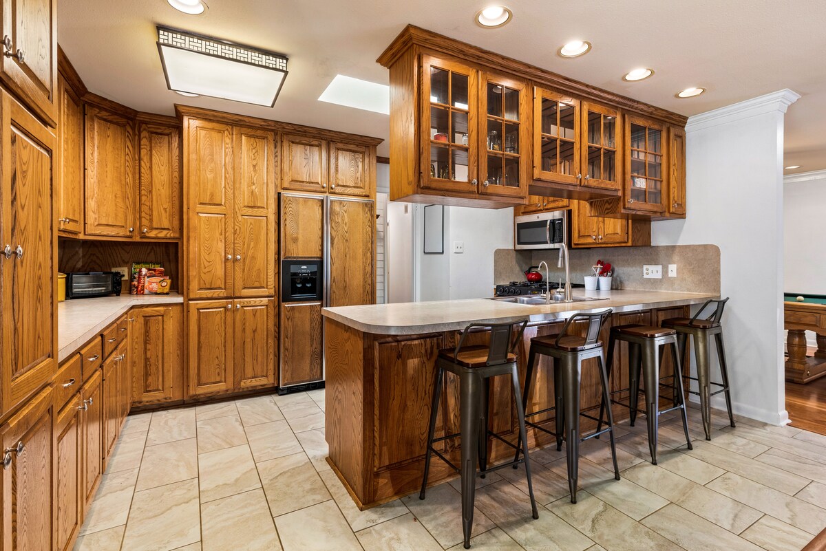 Cuatro camas / tres baños en el corazón de Baton Rouge. El espacio cuenta con todos los servicios que necesitas para que una familia o grupo se aloje bajo un mismo techo. Una gran sala de estar abierta que se extiende cómodamente da una habitación para grupos grandes para dispersarse. La mesa de billar es nuestra característica favorita, ¡espero que la disfrutes tanto como nosotros!