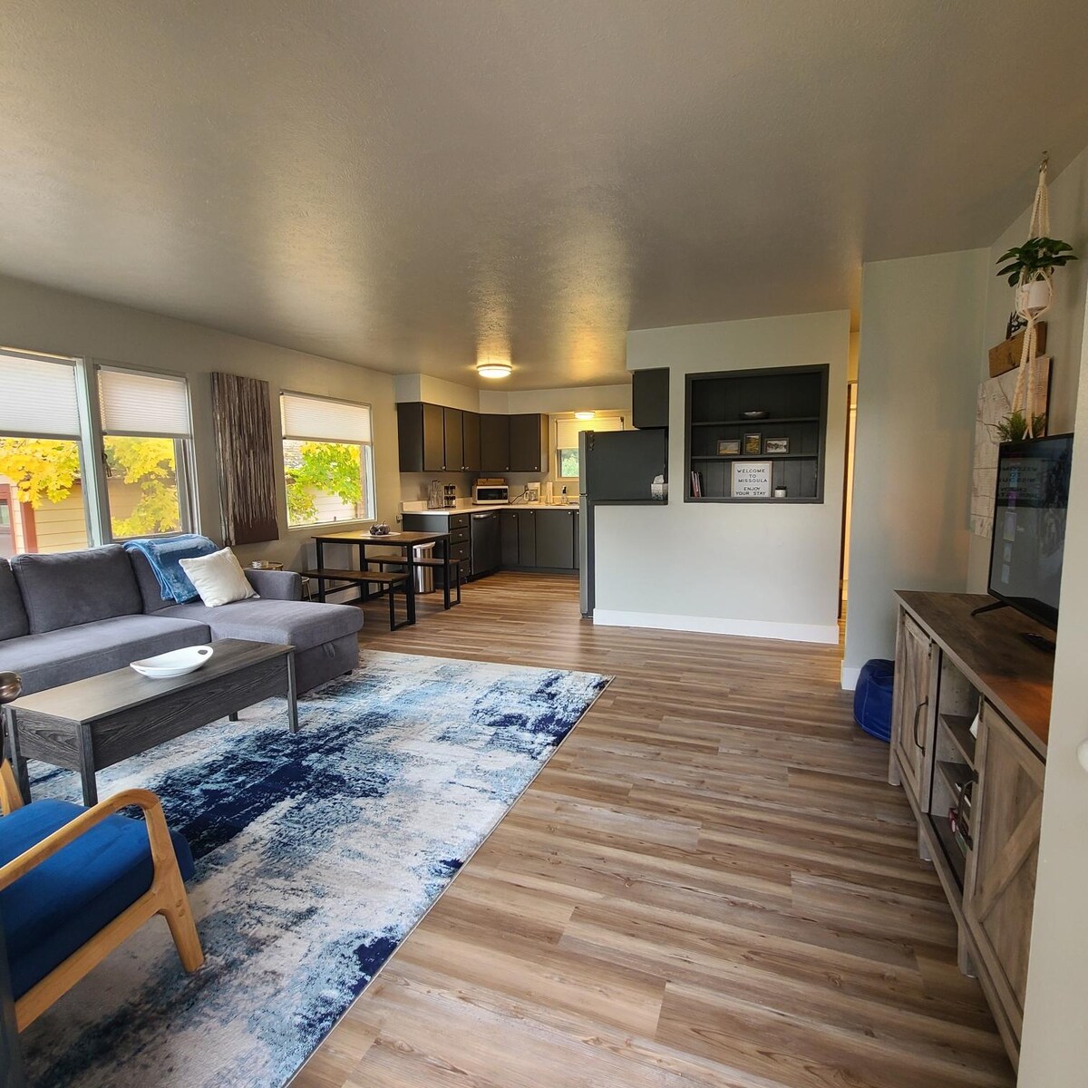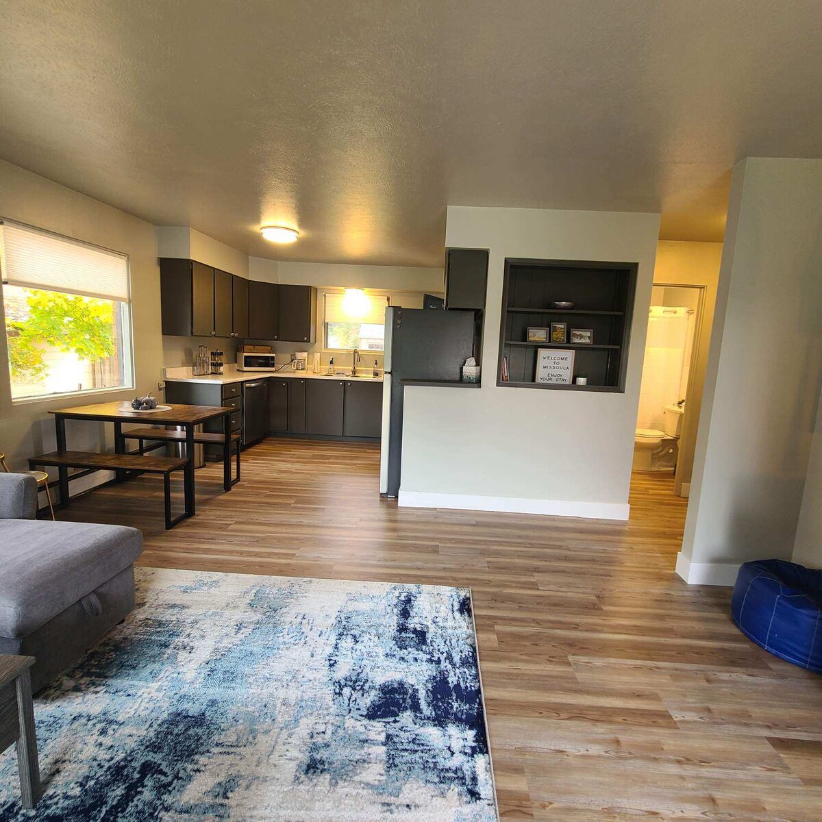 Bienvenido a nuestra casa totalmente remodelada y eficiente energéticamente, ubicada en el centro de las montañas de Missoula. Nuestra casa está a unos 10 minutos en bicicleta del centro de la ciudad o a un Lyft de $ 12. Esperamos que disfrutes de nuestro concepto abierto con un estudio de una habitación y un baño. Las comodidades incluyen una pequeña cocina totalmente equipada, un gran baño con bañera y artículos de tocador orgánicos, calentador de agua a pedido con suelos climatizados en todas partes (para esas mañanas frescas de Montana), lavandería equipada, gran patio trasero vallado y patio con asientos y parrilla.
