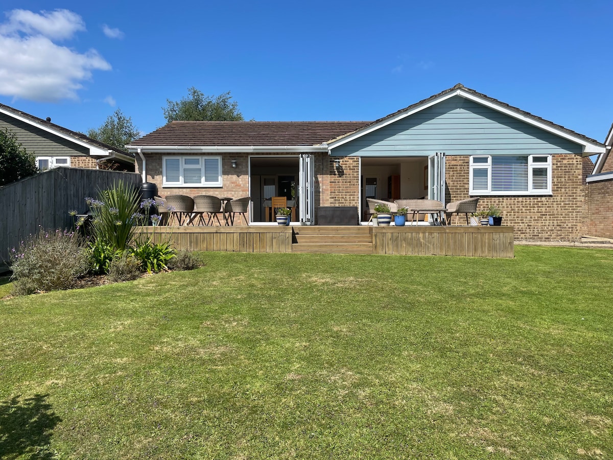 Stylish bungalow in the centre of the village of Bembridge. Short walk to shops, cafes, sandy beaches, harbour, coastal path. 4 bedrooms (master with en-suite), family bathroom, large open plan sitting room with smart TV. Bi-folds opening to patio with table, chairs, sofa, BBQ. Kitchen with microwave, dishwasher, washing machine, Nespresso. Large south facing garden with summer house & outdoor games. Playroom with table tennis table. Off-street parking. Ferry discounts available.