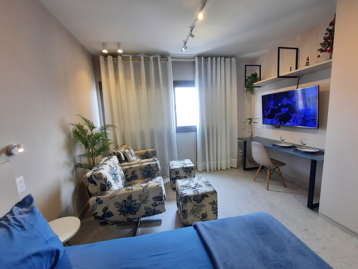 Relájate en este espacio tranquilo y elegante. Ambiente completo y cómodo para personas de buen gusto y altos estándares. Conser las 24 horas. Tiene un gimnasio completo en el lugar. Cerca del mercado, panadería, restaurantes, bares, farmacia y estación de policía. Para tu comodidad, tenemos artículos de minibar en el estudio que se pueden consumir en el sitio por una tarifa a través de pix. A 150 metros de la famosa Plaza Toco. A 15 minutos del centro de São Paulo en metro y a 10 minutos del estadio Neo Química Arena.