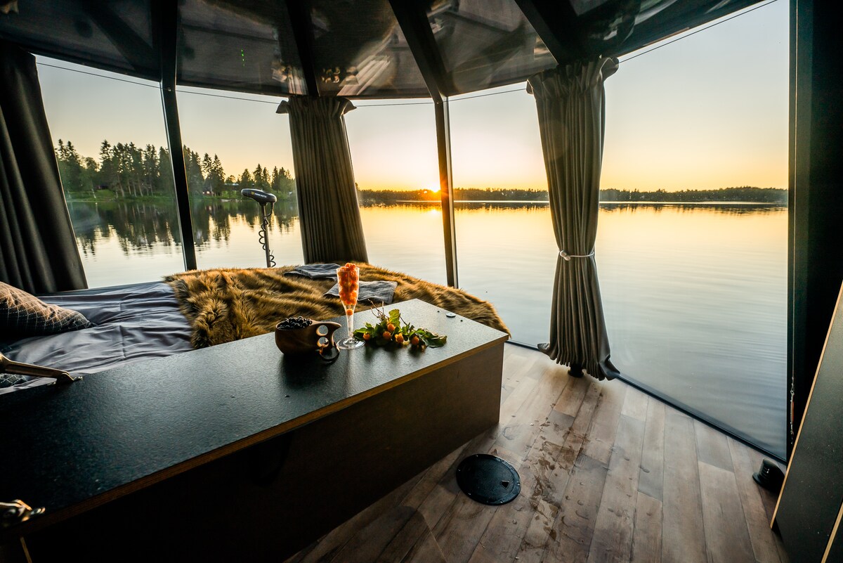 Experimenta una experiencia única durante la noche AuroraHut con glassig! A través de los grandes ventanales de iglú, puedes seguir los escenarios naturales de una manera completamente nueva. La función de barco de nuestro iglú es una manera de usar el iglú AuroraHut en el lago Ranuan. En invierno, el iglú se puede mover a un lugar que te guste cuando pasas la noche solo. Durante la noche los huéspedes pueden utilizar las zonas de baño y sauna en la posada de forma gratuita. El desayuno está incluido para la noche. Nuestro restaurante es deliciosa comida durante todo el año.
