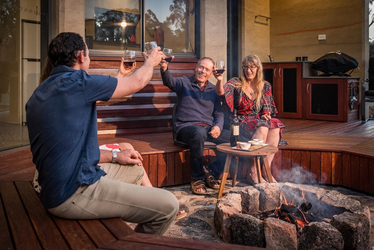 Nuestro rústico estudio de ladrillo de barro 1903 está hecho de arena de río y barro proveniente del área local del Gran Oeste. El estudio fue construido como una cocina de frutas por la familia Patching que poseía y operaba una serie de huertos a lo largo de Concongella Creek y Salt Creek. La cocina de frutas ha sido recientemente renovada en un estudio de 1 cama que ofrece historia y comodidades modernas. La cabaña está rodeada de tierras de cultivo, lo que significa que hay una abundancia de animales para observar y disfrutar, incluidos los canguros.