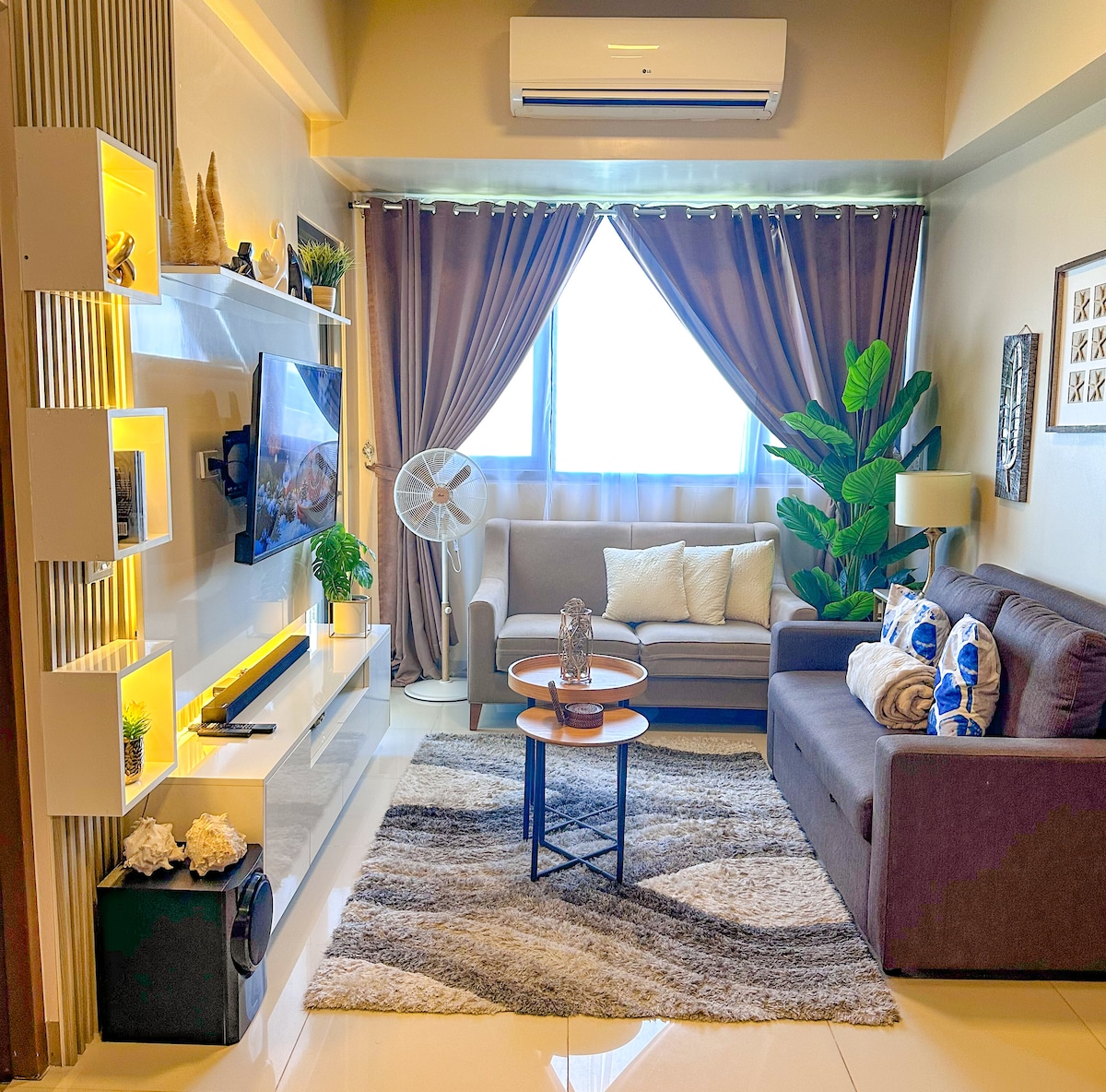 Executive Modern 1BR condo only 15 minutes to Airport Quality Queen Size Bed Wi-Fi/SmartTV/FreeNetflix Lockable Safe Smart Lock Access Hot Shower, Bidet Fully Equipped Kitchen Free Drinking Water from Japanese Dispenser Wide balcony,Seaviews&Breezes Gordon Ramsay/Japan/Korean Restaurants,Concierge,Pools,24hrSecurity Supermarket,7/11,Bakery,Starbucks,McDonald’s,Pharmacy,ATMs Beach Passes Php350/person IMPORTANT:Up to 20 hour daily Construction is next door.Thus our daily rate is a 30% discount