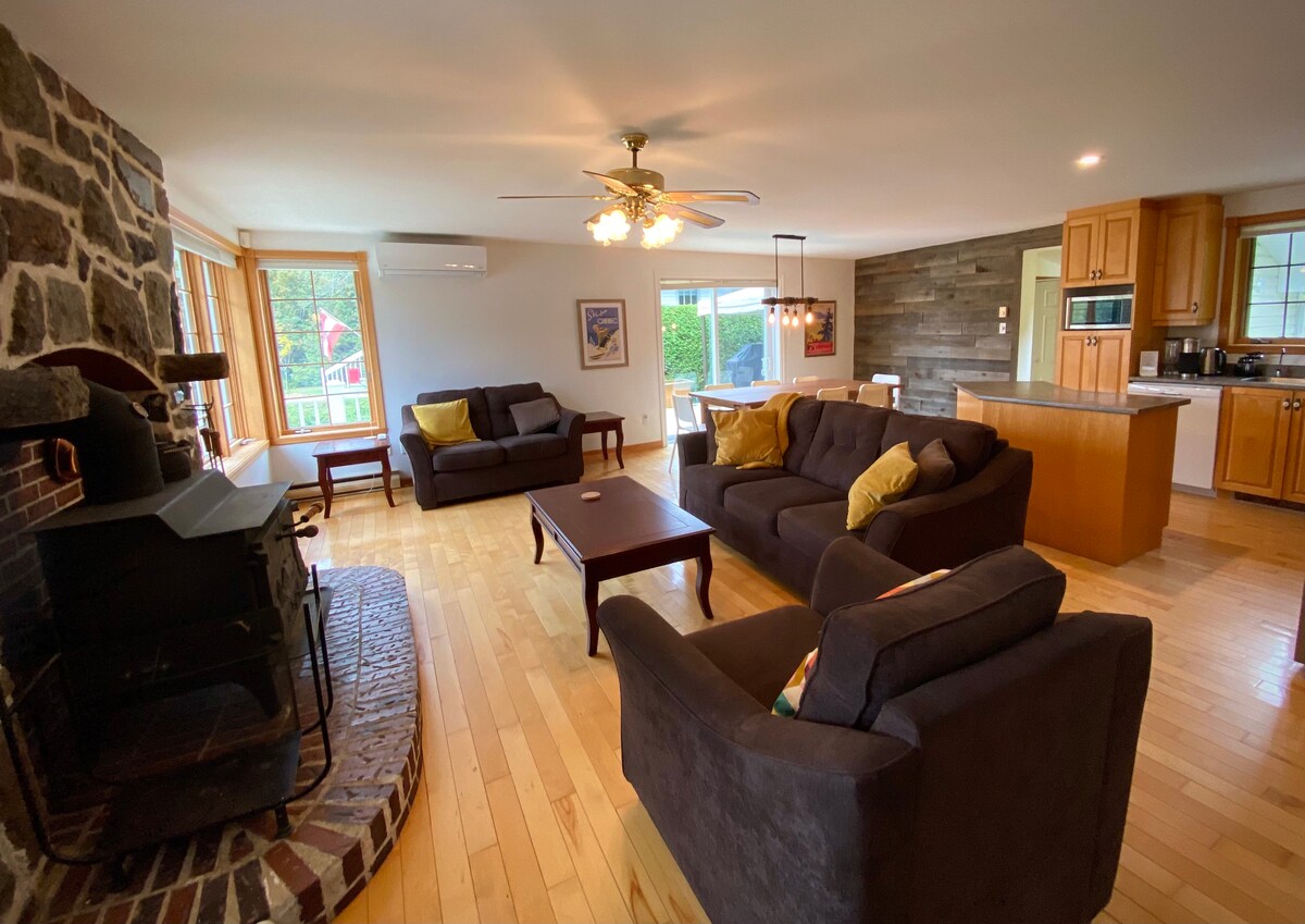 Ubicada a 20 minutos de las colinas del Mont Orford, esta casa de campo tiene todo para encantarte. Encontrarás una sala de estar con luz natural, un acogedor comedor, cocina totalmente equipada, dos dormitorios cerrados y un entresuelo de vidrio con sofá cama. Un patio (con barbacoa), una terraza enorme y el sótano también están a tu disposición. El chalet es ecológico. ¡Puedes disfrutarlo con total tranquilidad!