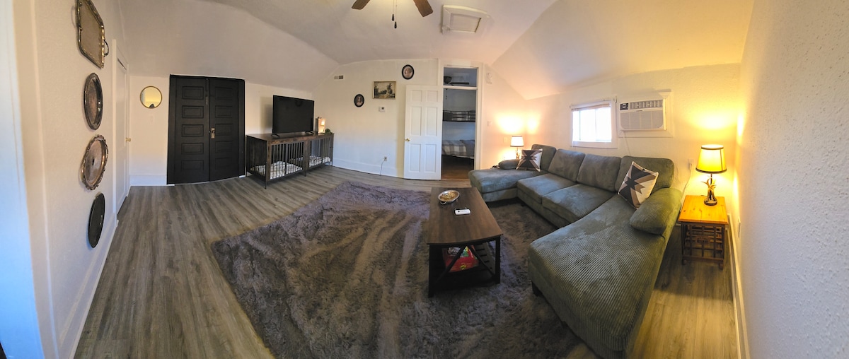 This two-bedroom, one-bath *second story* loft style living space is perfect for your stay in Eau Claire. Boasting a washer and dryer, full kitchen, keyless entry, many windows and comfortable furniture – you will feel right at home in this cozy and functional space. Nestled in a quiet neighborhood minutes away from downtown and UW-Eau Claire. This area offers many options for dining, the arts and shopping. Everything you could want or need is a short drive, bike ride or walk away.