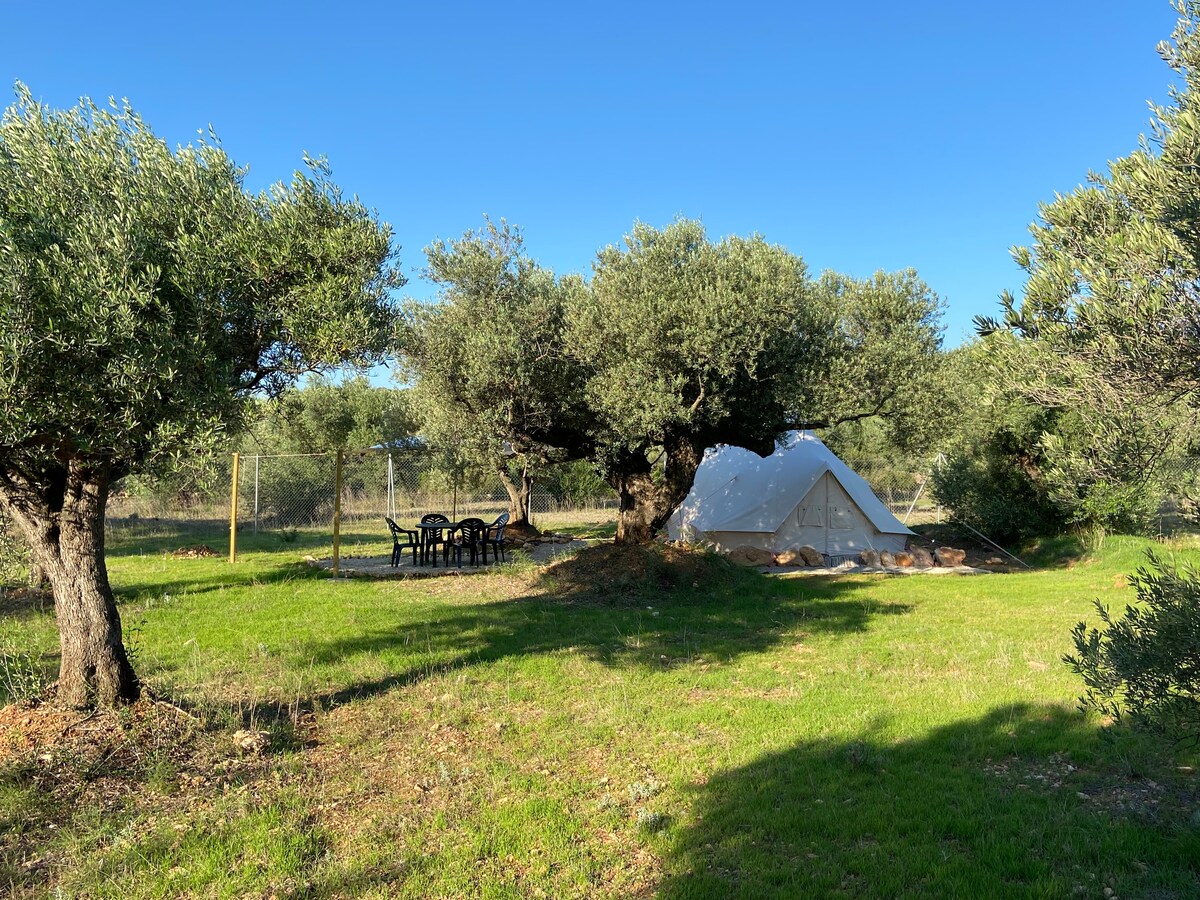 Tienda de campaña para 2 personas en un lugar espacioso con vistas despejadas, cerca del edificio de aseos. Incluye 2 camas con colchones de espuma de 190x90, pufs, 2 sillas, mesa, electricidad, nevera y pequeñas lámparas. En plena naturaleza, pero a solo 10 minutos a pie del encantador pueblo de Horta de Sant Joan. En la ruta peatonal y ciclista de Via Verde y en el parque natural de Els Ports. Camping con terraza, por lo tanto, vistas despejadas. Solo mayores de 14 años. Uso gratuito de agua caliente, libros, juegos, piscina, petanca, terraza, barbacoa, cocina exterior y wifi.