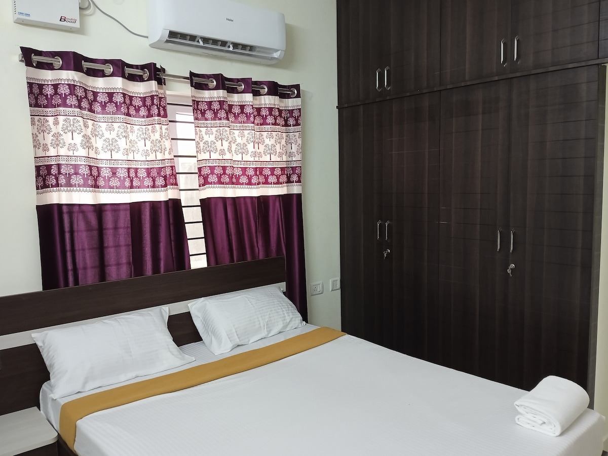 (No se admiten parejas solteras). Ubicado en un barrio tranquilo, este apartamento totalmente amueblado y espacioso de 2 BHK es el lugar ideal para tu escapada de fin de semana o una larga estancia, lejos del ajetreo y ajetreo de la ciudad. ¡Está a 45 minutos del centro de la ciudad, pero también más cerca de todas las atracciones y lugares de entretenimiento que ofrece la ciudad! Este lugar es perfecto para familias y viajeros de negocios. Puedes reservar una habitación o todo el apartamento en función de tus requisitos.