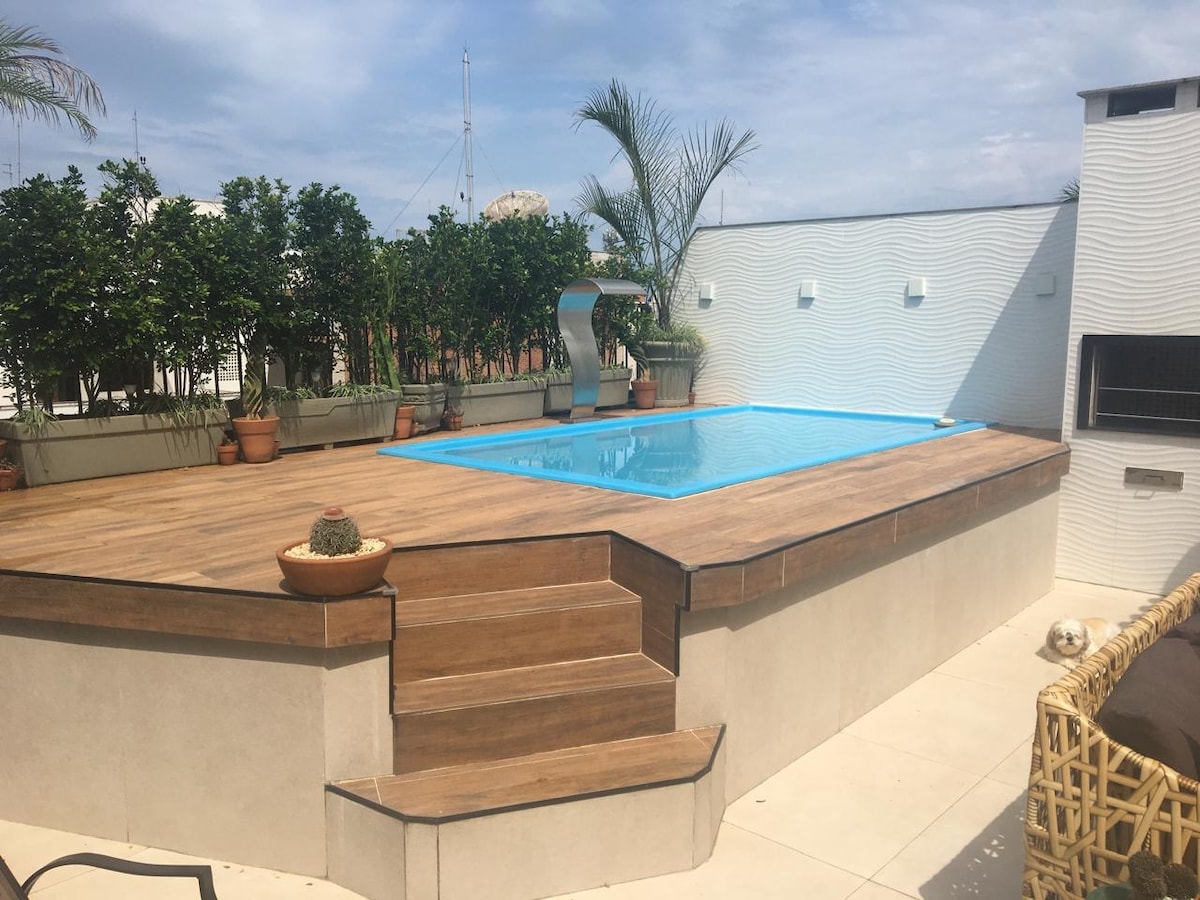 Relájese en este espacio tranquilo y elegante. Disfrute de la vista de la piscina con borde infinito en la azotea. O relájese en la bañera de inmersión ubicada dentro del apartamento y con una hermosa vista. Lugar acogedor bien decorado, listo para recibir a parejas apasionadas, amigos y familiares. En el corazón de Enseada, estamos a 100 metros de Carrefour, Swift, Academia, Burger King y varias otras tiendas. A 400 metros de la playa de Enseada, una de las más bellas de Guarujá. ¡Ven a disfrutar de unos días increíbles!