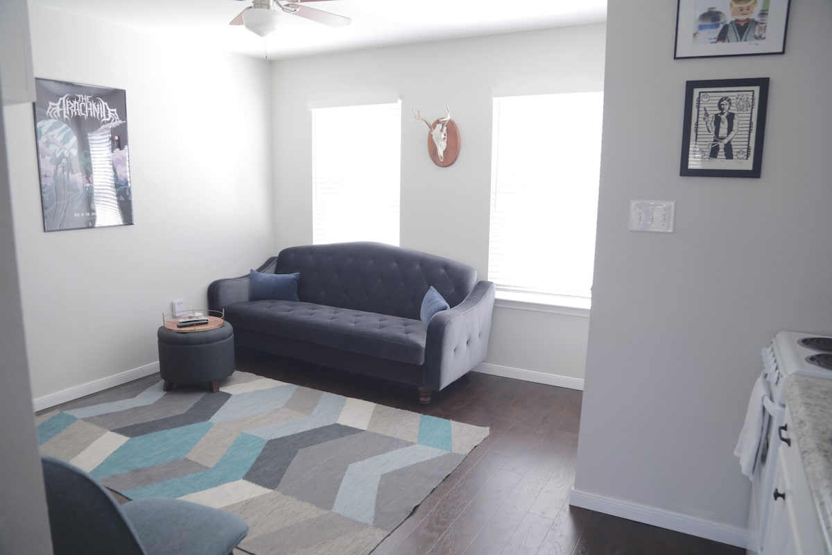 Relájate en este elegante estudio privado de un dormitorio para huéspedes mayores de 25 años, ideal para viajeros solos o parejas que buscan comodidad y privacidad. El espacio, cuidadosamente diseñado, incluye una cama tamaño queen, una sala de estar, un espacio de trabajo dedicado y un baño privado con amenidades de primer nivel. Aunque está unido a la casa principal, el estudio está completamente separado con su propia entrada segura a través del garaje compartido. Este es un estudio privado solamente, no un alquiler de toda la casa.