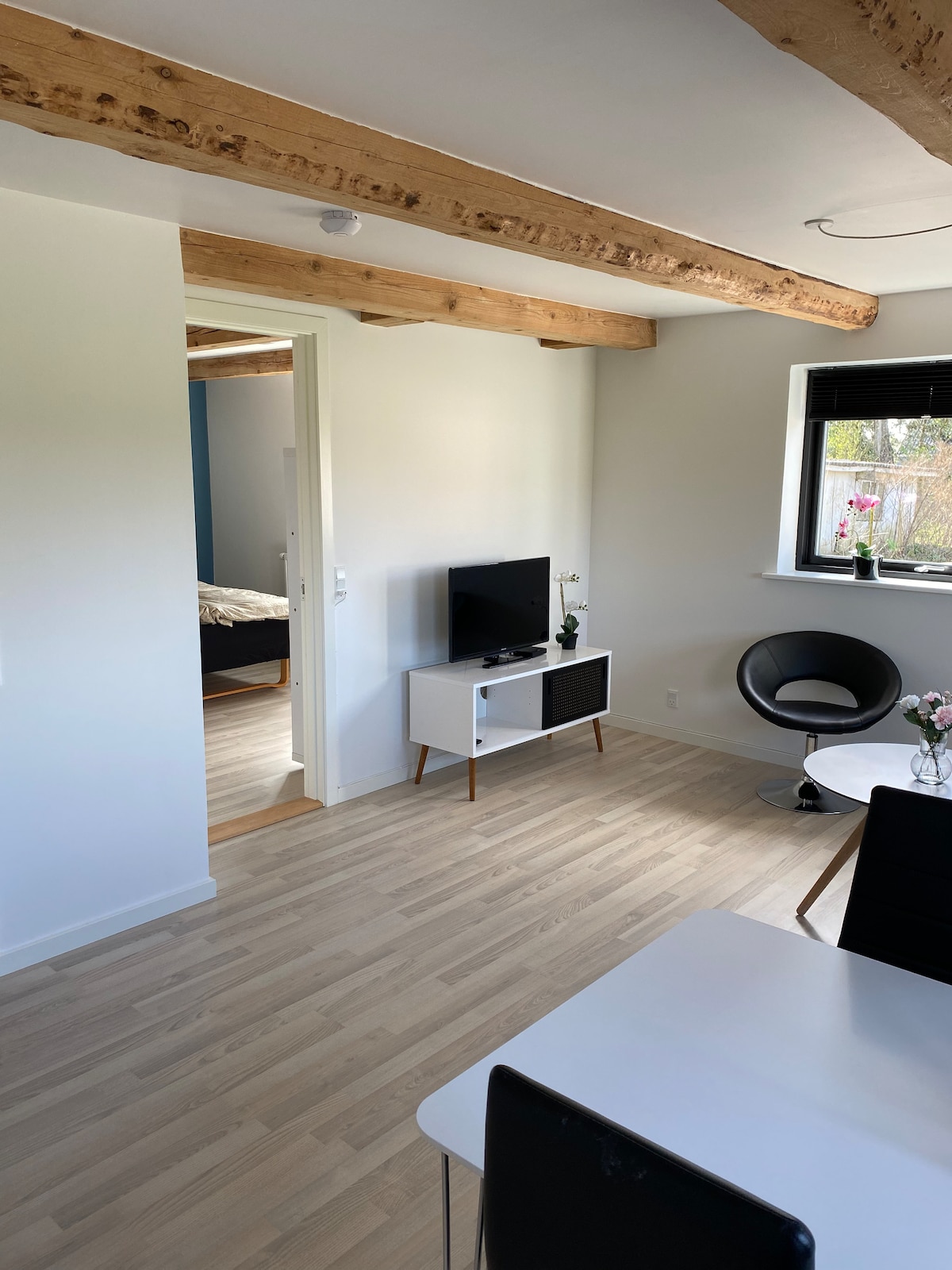 Encantador apartamento de 1 dormitorio en el primer piso de la casa privada. El departamento se encuentra en un pequeño pueblo en Midtfyn, a pocos kilómetros de las tiendas, a solo una cuadra de Svendborg y a 20 minutos de Odense, junto a la autopista cercana, lo que no molesta. La vista muestra el lado escénico de Funen a solo 5 km del castillo de Egeskov y a unos cientos de metros del campo, el bosque y el pequeño arroyo. El apartamento tiene un baño privado con lavadora, una acogedora cocina con un pequeño horno, placas térmicas y un comedor, y una sala de estar con TV, una cama doble y un sofá cama.