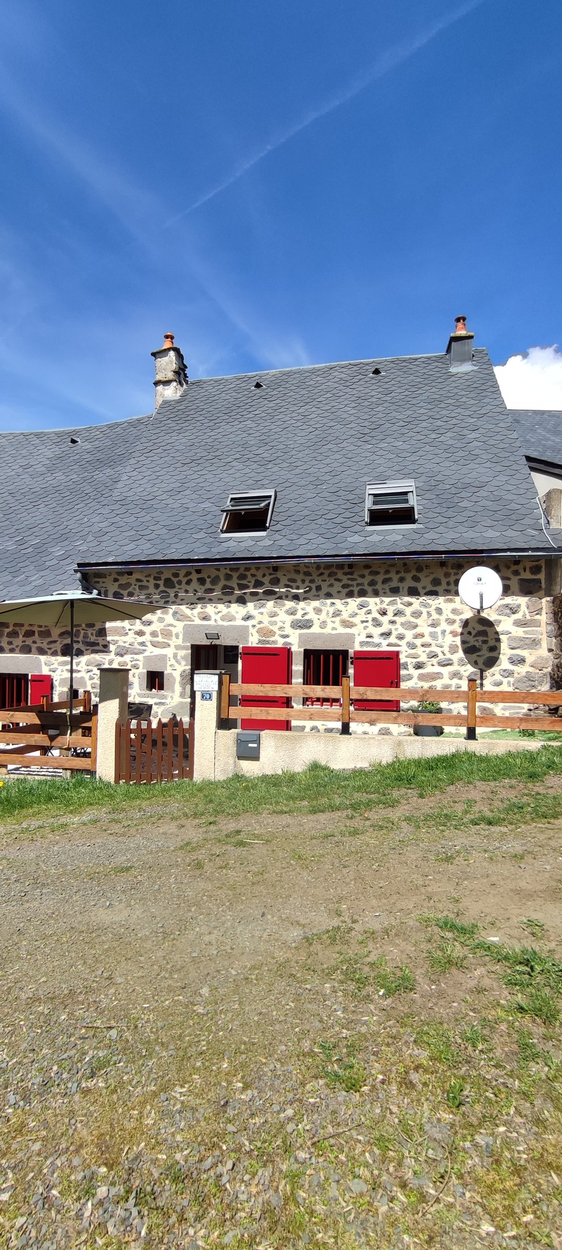 Ubicada en el campo, a 4 kilómetros de Condat y junto a nuestra casa, se encuentra nuestra granja Cantal conocida como «longère». Paredes de piedra gruesa, vigas de madera, amplio salón con chimenea tradicional y estufa de leña, televisión por internet, dos dormitorios, baño y cocina equipada. Disfruta sentado junto a un fuego crepitante de leña en invierno o a la sombra del viejo tilo con una copa de vino disfrutando de las espectaculares vistas en verano. Sea cual sea la época del año, disfrutarás de la comodidad y el encanto de la Longère.