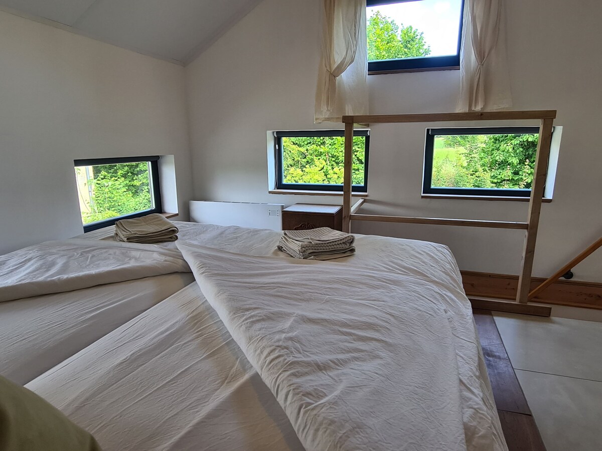 Esta hermosa casa de campo ecológica tiene una ubicación ideal en las afueras de la ciudad. Está a 20 minutos a pie o 5 minutos en bicicleta del centro de Maastricht con excelentes restaurantes y tiendas. La reserva natural de sintters está a la vuelta de la esquina, donde puedes hacer senderismo o montar en bicicleta. Puedes hacer un recorrido por las cuevas o dar un paseo por el famoso castillo de Andre Rieu. También hay una extensa red de bicicletas para explorar la zona. La cabaña tiene un dormitorio doble y un dormitorio individual.