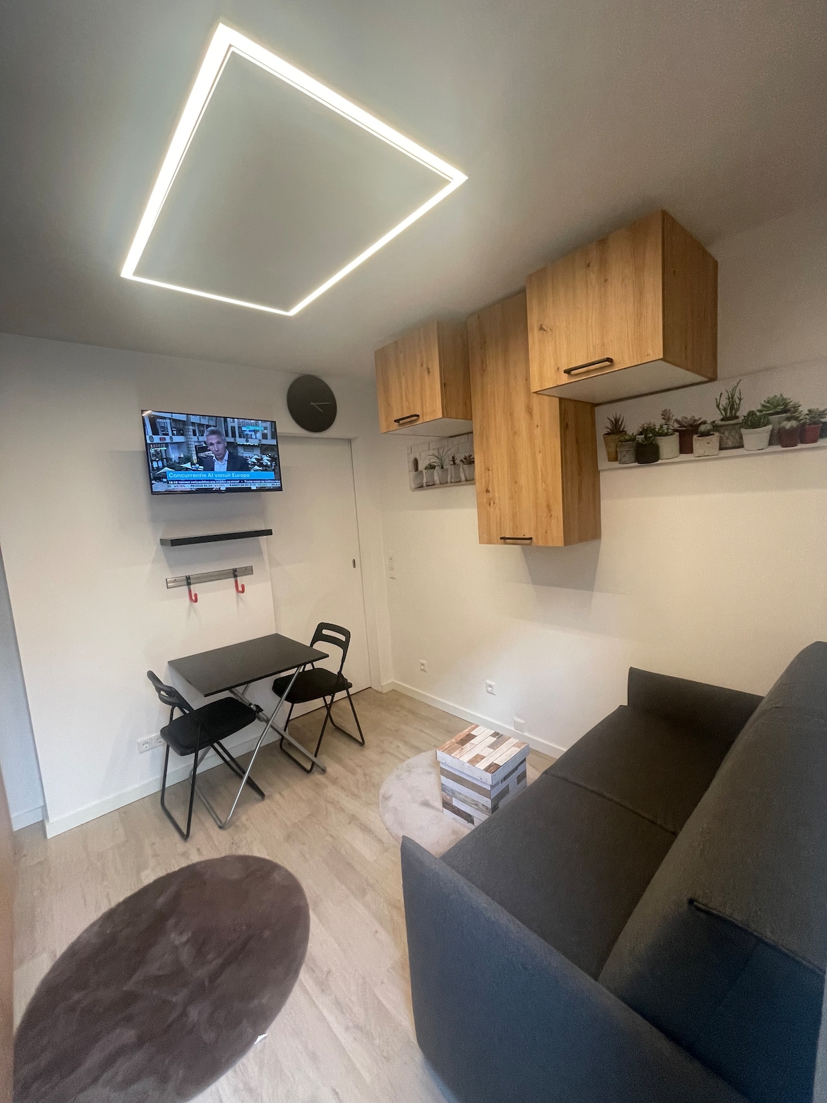 El alojamiento, situado en el centro, está decorado con buen gusto. - Estudio todo incluido en la parte trasera del jardín. Baño con azulejos de mármol (ducha, inodoro, lavabo, espejo y lavadora/secadora). Secador de pelo, plancha y tabla de planchar. Ventilación y detector de humo. - Sofá cama fuerte y robusto. Se duerme como en una cama normal. - Cocina con placa de inducción, lavavajillas, nevera, congelador y microondas combinado. Hay una mesa de comedor y 2 sillas. - En el exterior, puedes disfrutar de un jardín, un patio con una mesa de mármol y 4 sillas de jardín.