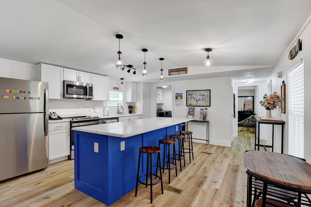Orange, que es el color favorito de nuestros 4 nietos, tiene excelentes alojamientos para adultos, con todo lo necesario para una estancia de 2 o 30 noches. En el exterior, amplio aparcamiento, incluido para tu barco, estación de carga de baterías, chimenea, gran porche, hamaca y mucho más. Los niños disfrutarán de 2 columpios, un fuerte en un árbol y una casa de juegos totalmente equipada. La zona de juegos está alejada de vecinos y carreteras. Todo en un acre con un pequeño arroyo. Como tu anfitrión está a menos de 5 minutos, ¡haré todo lo posible para que tu estancia sea maravillosa!