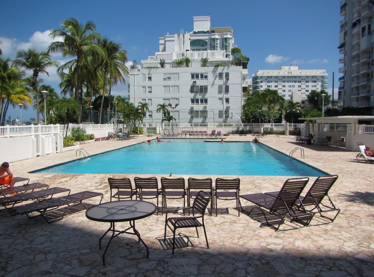 Disfruta de una experiencia relajante y divertida en este céntrico alojamiento. Un apartamento totalmente renovado y equipado con una vista increíble, piscina, famoso acceso a la playa, parque infantil, equipo de ejercicio, wifi de alta velocidad para trabajar y disfrutar, canchas de baloncesto y tenis. Esta ubicación está a poca distancia a pie de varios restaurantes, casinos y farmacias. Además, está cerca de muchas atracciones importantes, centros comerciales y la única selva tropical de los Estados Unidos, «El Yunque». Incluye estacionamiento gratuito y seguridad las 24 horas.