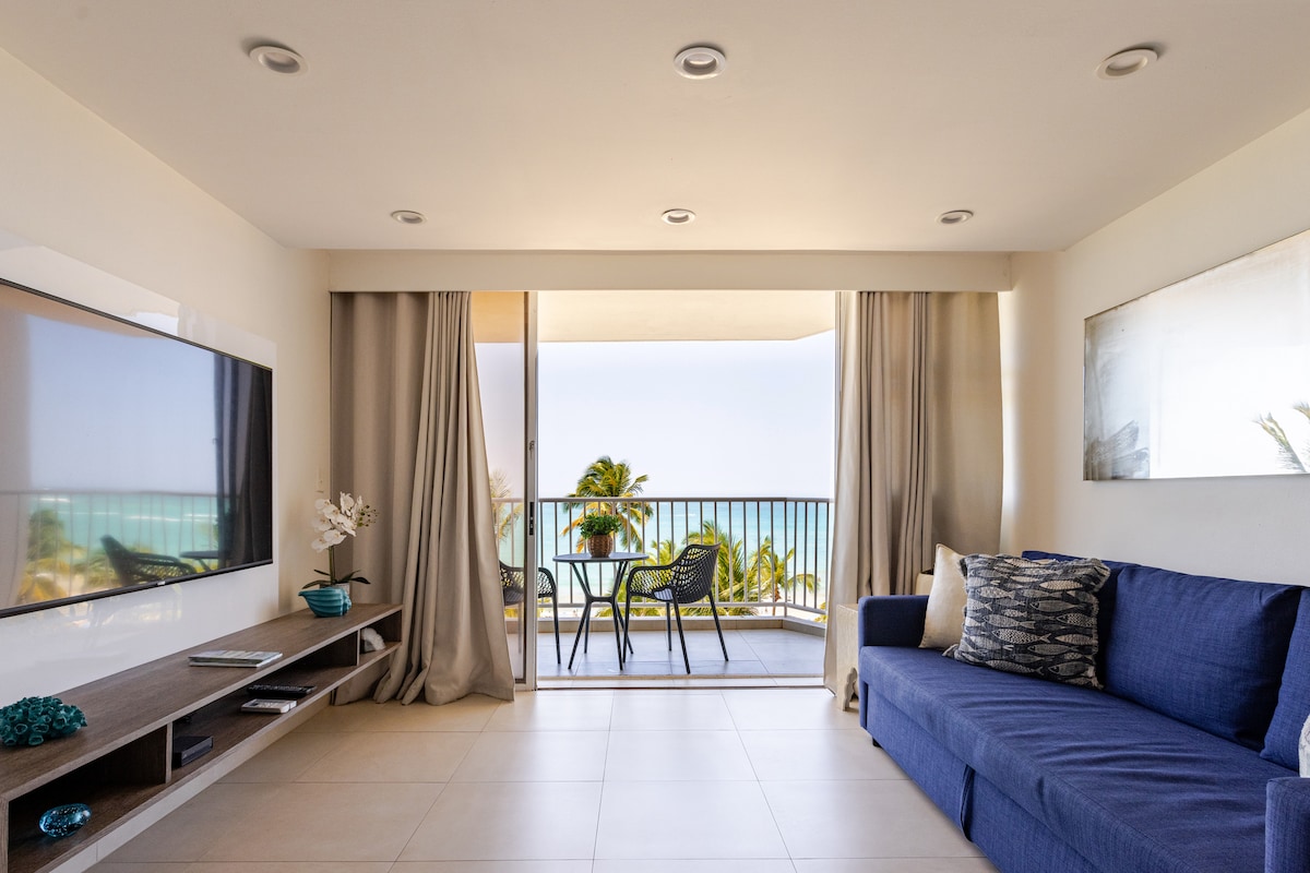 Million-dollar view—BOOK NOW! Proudly 100% Puerto Rican (and Veteran) owned. 🇵🇷 10th-floor studio w/ stunning sunsets. 5 min from SJU airport, <1 min walk from lobby to the beach! ✅ 1 free garage parking ✅ Self check-in ANYTIME after 3 PM ✅ Free luggage storage ✅ 24/7 market 10-min walk ✅ Lobby café & bar 🧺 Paid laundry in basement ❌ No pool ❌ No early check-in/out