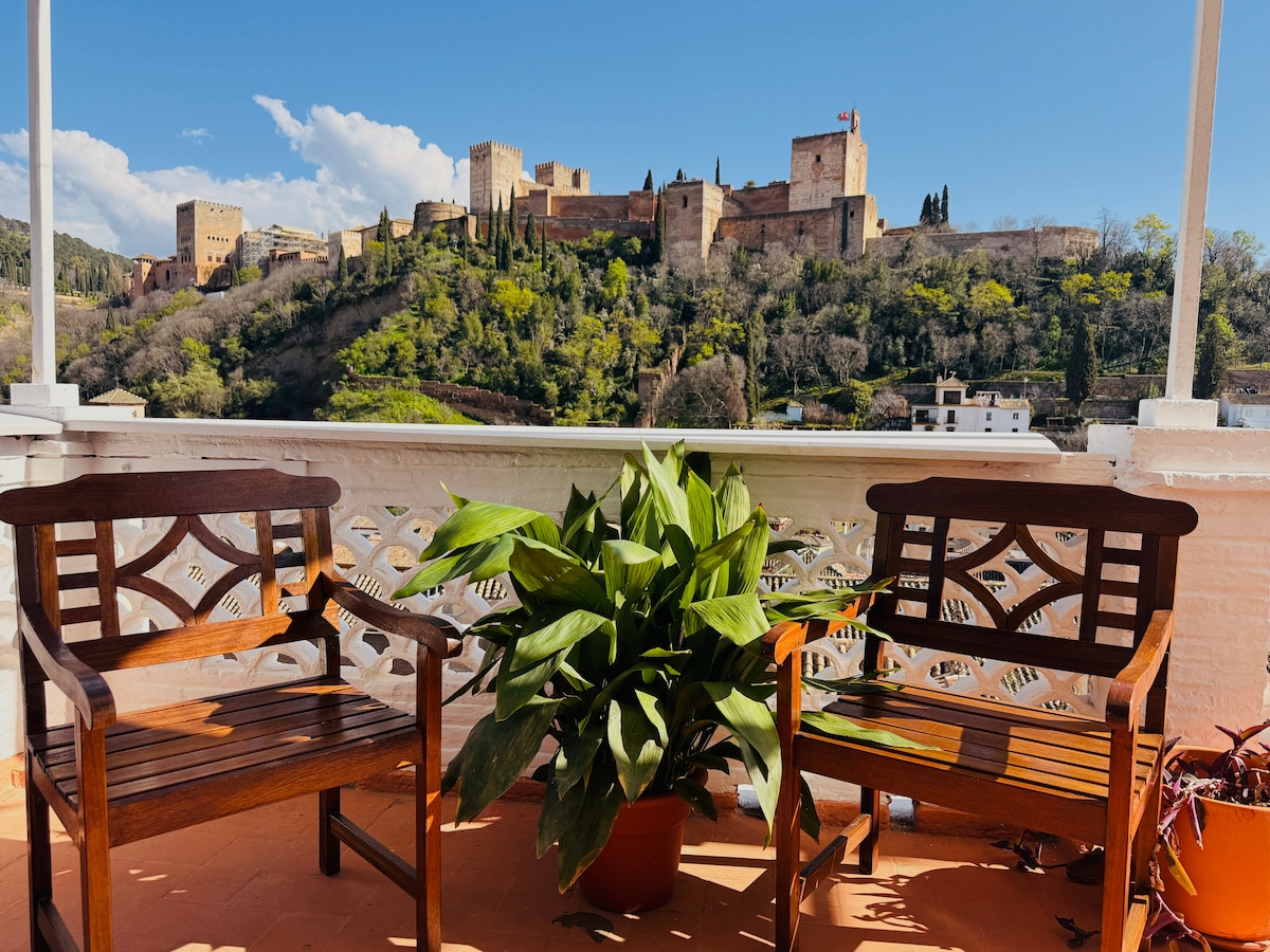 Increíble apartamento en pleno barrio histórico de Granada llamado Albaicín. Desde la cama tendrás unas vistas impresionantes de la Alhambra que parecerá que puedes llegar a tocarla con las manos....Desde el salón podrás disfrutar de la misma sensación. Situado en una zona inmejorable, justo en frente de la Alhambra donde se puede disfrutar de las mejores y más cercanas vistas a este impresionante monumento.