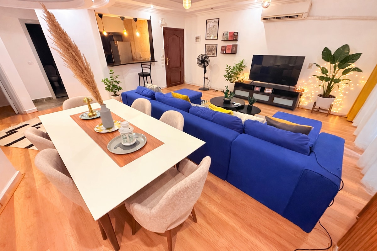Family-Friendly. Stress-Free. No Cleaning Fee. Looking for Cairo comfort without the chaos? This quiet, renovated 3BR is designed for families who need space, safety, and no hassle, somewhere both parents and kids can actually enjoy. ✅ 3 Bedrooms + 2 Living Areas ✅ Maadi = Family-Friendly + Walkable ✅ Full Kitchen + Dining Area ✅ Jacuzzi Tub – Unwind after long days exploring ✅ Quiet Balcony with Green Views No chores. No stress. A comfortable place that works for the whole family.