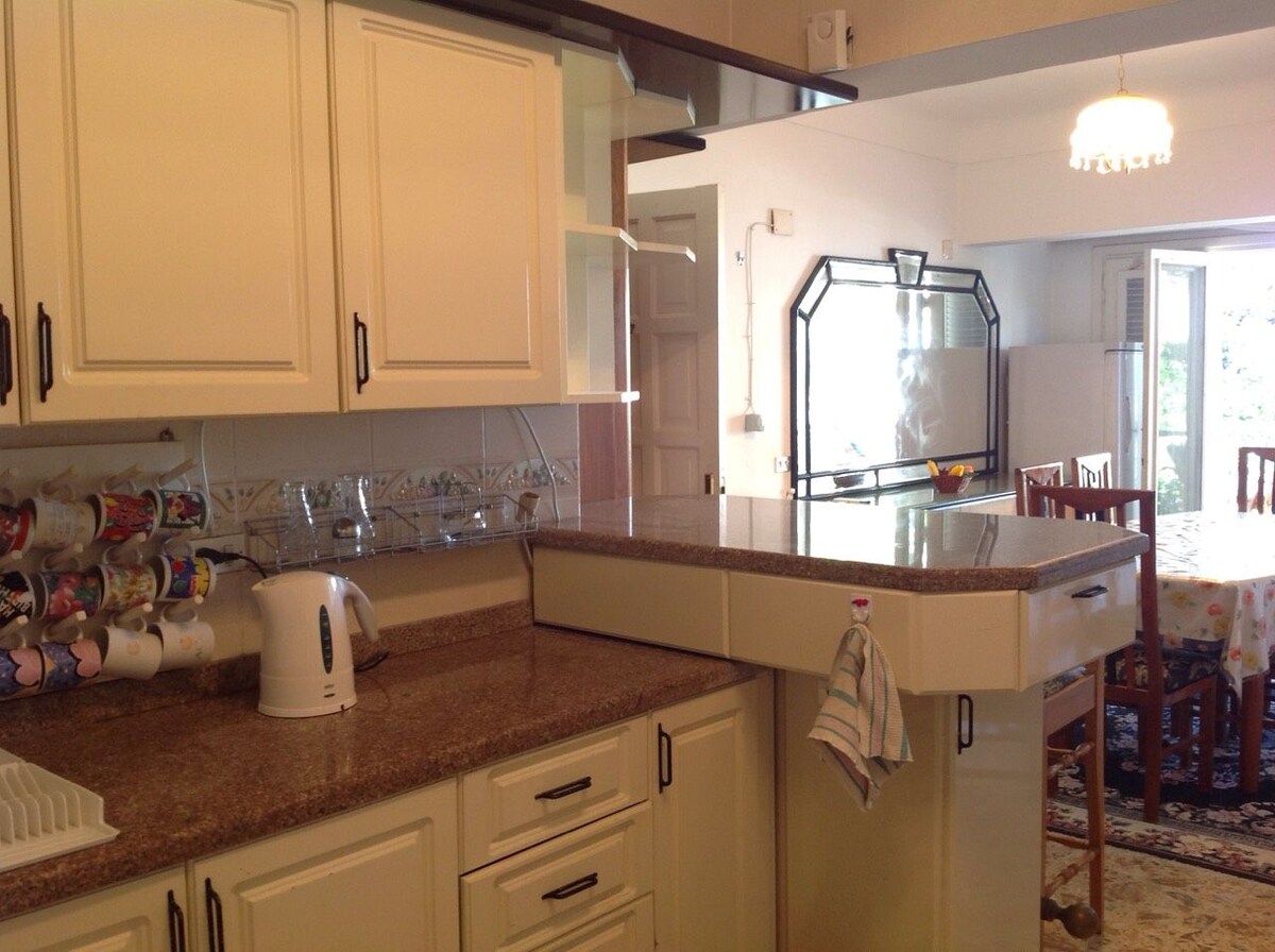 Nuestro amplio, relajante, sencillo y encantador apartamento de dos niveles en la costa norte de Marina tiene un lago único y vistas al mar. El apartamento está cerca de los mercados y del restaurante Seagull. A 3 minutos de Porto. Está en el tercer piso. Tiene 5 camas y otros 2 colchones. Un balcón, una gran terraza, cocina totalmente equipada, 2 baños con cabañas de ducha, satélite, aire acondicionado en los dormitorios.