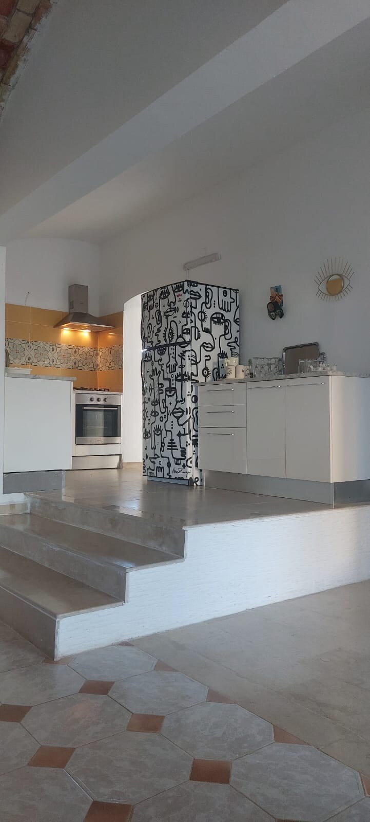 Disfrute de una estancia agradable en este acogedor alojamiento en El Haouria Plage a 200 metros de la playa de arena. un amplio salón, 2 habitaciones, ducha, cocina y zona de comedor, terraza y acceso a la azotea con vistas panorámicas al mar y a la montaña.