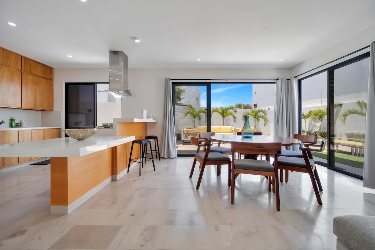 Disfrute de una estancia tranquila en esta hermosa casa de tres dormitorios, ideal para familias o grupos. • Una cama king y dos camas queen en el segundo y tercer dormitorio • Explore playas, restaurantes e historia a lo largo del Corredor Turístico de Los Cabos • Terraza privada y zona en la azotea con parrilla y hermosas vistas al mar • Piscina con tumbonas • Diseñado cuidadosamente y totalmente equipado con electrodomésticos modernos • Wifi rápido, televisor inteligente y aire acondicionado en todas las habitaciones. • Centro de lavandería disponible.