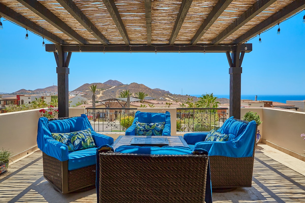 - Revel in panoramic ocean vistas from a private rooftop with a hot tub and fire pit. - Access exclusive amenities like a private pool and nearby clubhouse with pools and gym. - Villa features smart TVs, high-speed WiFi, and fully equipped kitchen for convenience. - Benefit from 20% off on food and drinks at Pueblo Bonito resorts nearby. - Reserve now and immerse in a blend of luxury, privacy, and vibrant surroundings!