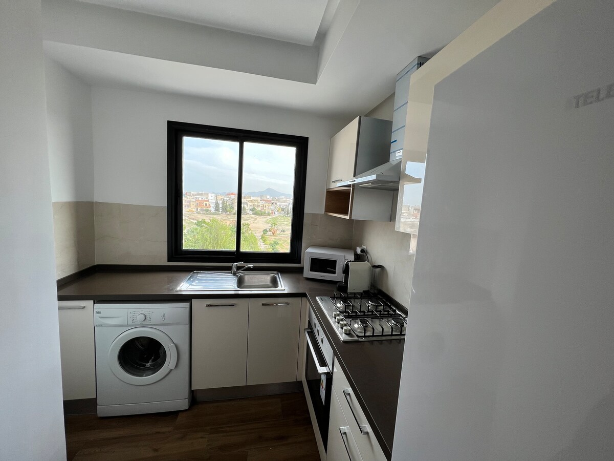 Apartamento nuevo bien situado y cerca de todos los servicios, en las afueras del sur de Túnez en una residencia tranquila y segura (Zahret el Medina) Se trata de un S+1 ricamente amueblado que consta de una cocina americana equipada, un bar, una sala de estar amplia y luminosa con balcón y un baño con ducha a ras de suelo y un dormitorio. Ideal para una pareja o más (posibilidad de instalar más camas).