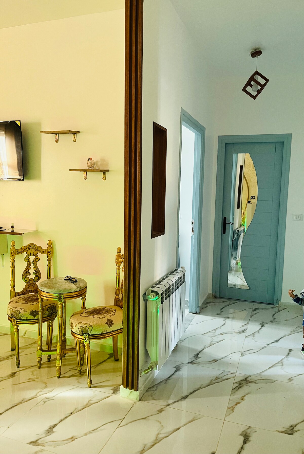 Apartamento situado en pleno centro de El Bardo, una ciudad famosa por su historia y su museo nacional. A solo 10 minutos a pie, descubra uno de los museos más bellos del país. El apartamento ofrece unas vistas maravillosas de los Acueductos Romanos de Bardo. Lahneya es un barrio animado que ofrece una multitud de tiendas, restaurantes y cafeterías. Está a solo 15 minutos del aeropuerto y de la medina y de la famosa mezquita de Ez-Zitouna. El apartamento es luminoso y espacioso con todas las comodidades modernas.