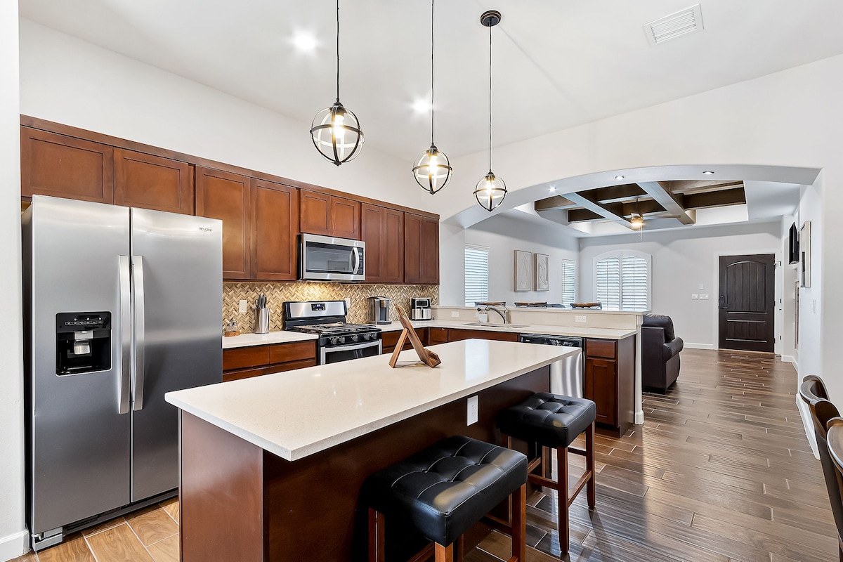 Experimenta la vibrante cultura mexicano-estadounidense y su cálida hospitalidad en esta casa actualizada de concepto abierto. Ya sea que estés en la ciudad para trabajar, relajarte o jugar, esta espaciosa casa de 3 dormitorios/2 baños con sala de juegos, más de 500 Mbps, aire acondicionado refrigerado, suite king y cocina gourmet lo tiene todo. ¡Relájate junto a la mesa de fuego o la pérgola de hamacas en el NUEVO refugio del patio trasero con cancha de baloncesto y pickleball! Cerca de la I-10, el aeropuerto, UTEP/UMC/centro de la ciudad/FtBliss/HuecoTanks/comida/parques/tiendas. ¡Estamos deseando recibirte! ¡Bienvenidos!