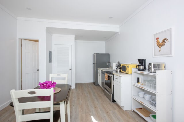 Recientemente remodelada, esta cabaña es fresca y elegante. Camina kilómetros por la playa de arena blanca, sueña en la hamaca a la sombra de una palmera y luego tómate un cóctel en la terraza totalmente protegida. Asa tu pesca fresca afuera o deja que tus jugos creativos fluyan en la cocina bien equipada. Luego explora todo lo que Eleuthera tiene para ofrecer desde esta céntrica ubicación. RD (2B/2B) se puede alquilar por sí mismo para un máximo de 4 personas, o *con Morning Glory (al lado) para alojar hasta 10* (anuncio separado).