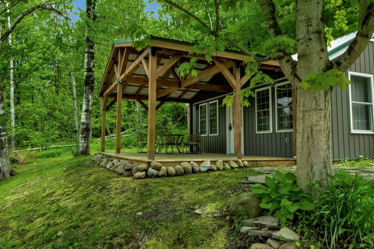 Este espacio privado está escondido en un rodal de pinos en el bosque junto a Bryant Hill Creek. Una pared de ventanas trae la naturaleza y la luz natural al espacio, y una cocina totalmente equipada y un baño europeo proporcionan comodidad moderna. A menos de 4 millas de E-ville, tiene capacidad para 2 adultos y ofrece un entorno elegante y romántico para que una pareja se esconda con fácil acceso al centro de la ciudad. 4x4 es imprescindible en la nieve, o simplemente aparca al pie de la entrada. TV y wifi.