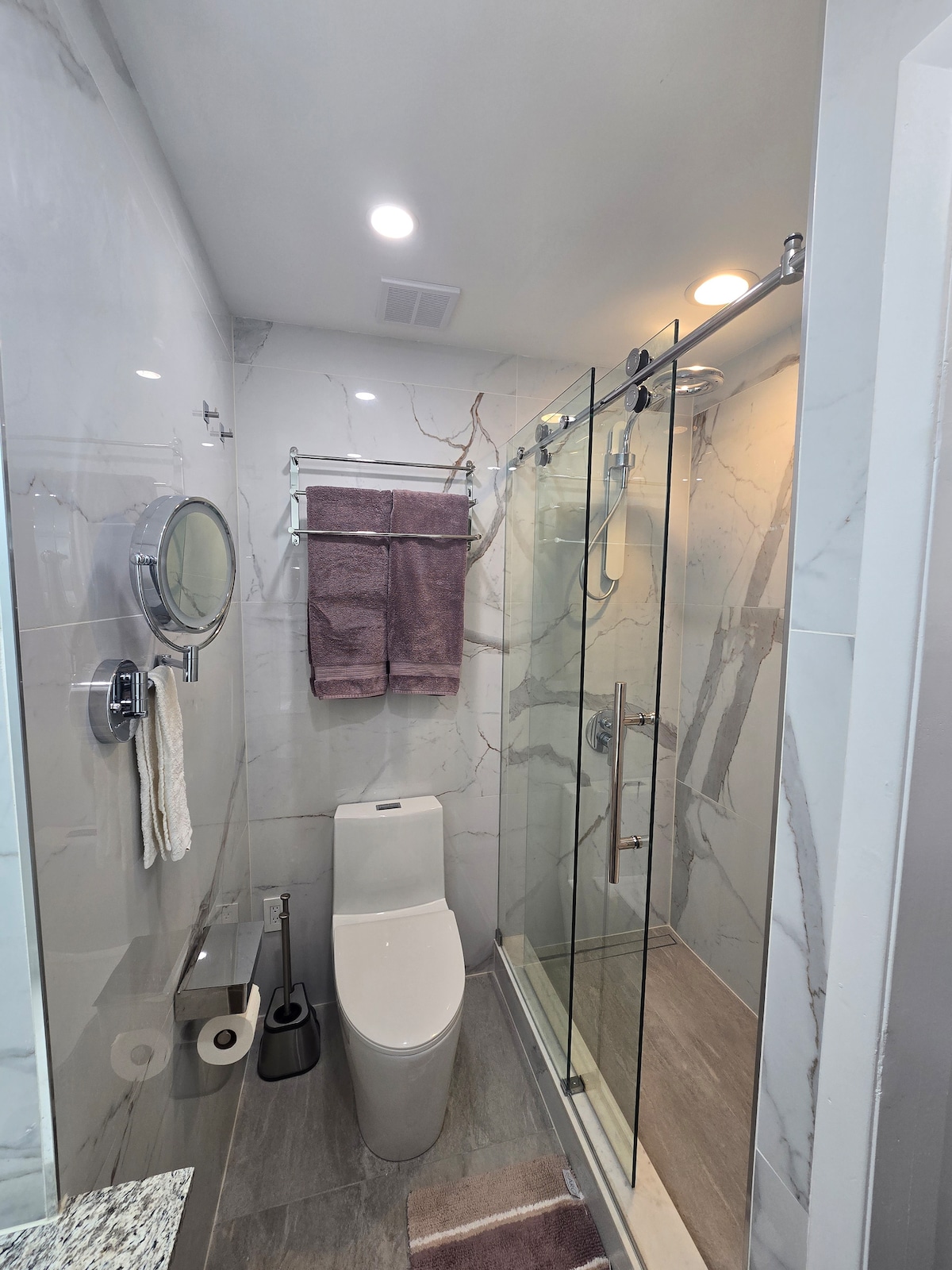 Beautiful private 1 BR condo in Jersey City - easy access to NYC, Hoboken. Just 11min walk to Path train ~ 16min to NYC or the Bus is 1/2 block away to train, NYC. Close to restaurants, wine, shopping (7min walk). Includes garage parking for 2 with EV charging. Also has private backyard/garden. BR: Queen bed, TV, armoire. LR: TV, sleeper sofa. Full kitchen: dining bar/Dishwasher/Dinner/Cookware/Range Bath: Rain shower + handheld Terrace dining and gas grill PERMIT NO. STR-00639-2024