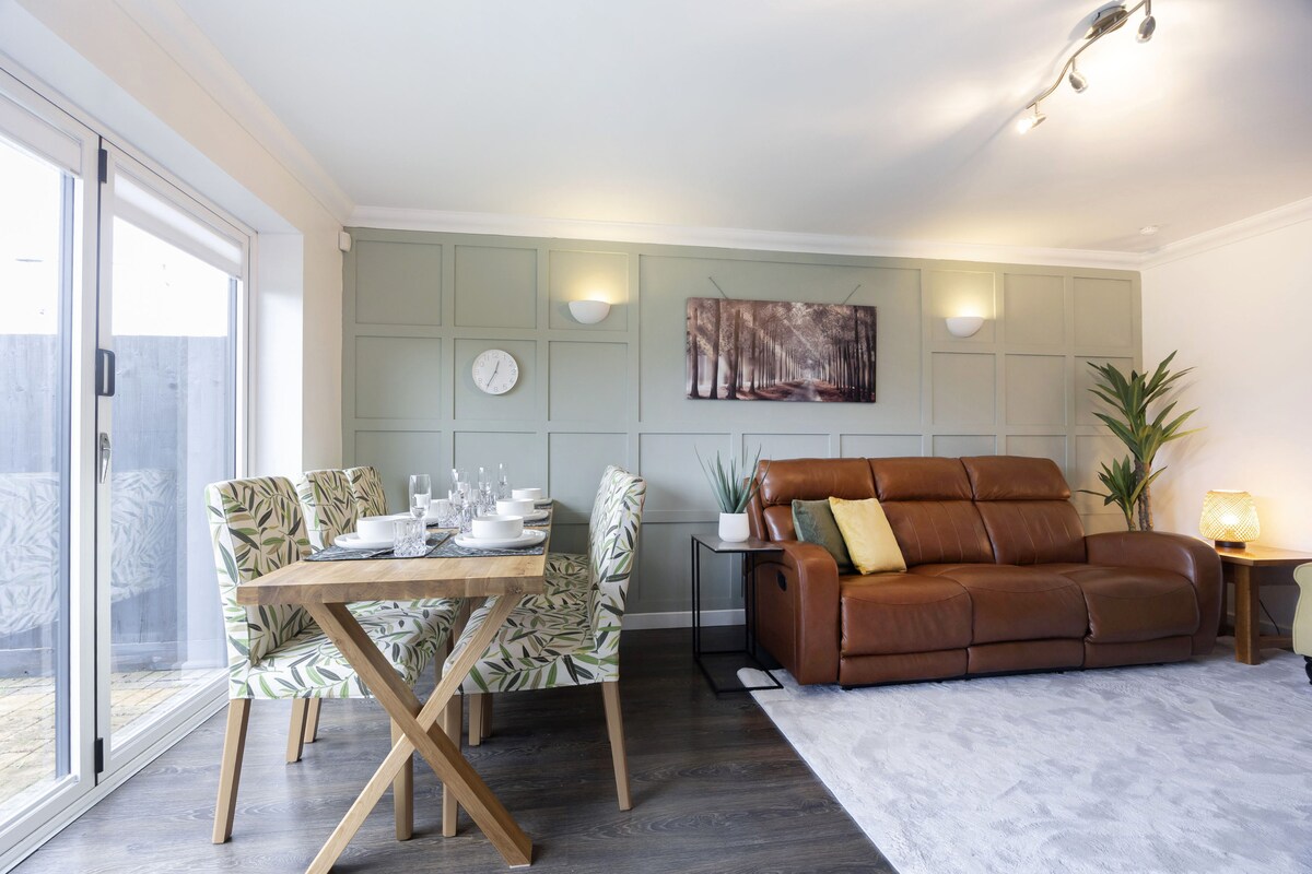 Bienvenido a nuestra casa de 4 dormitorios ubicada en el pueblo de Woodmancote, cerca de Cleeve Hill y Cheltenham, justo al lado de The Cotswold Hills, conocida como la capital del senderismo de Inglaterra y AONB. Bellamente presentada en todas partes, esta casa independiente se beneficia de una cocina/salón/comedor de planta abierta totalmente equipada con puertas correderas que dan al jardín, acogedora sala de estar separada con TV. 4 dormitorios dobles con capacidad para hasta 8 huéspedes, en suite para el maestro y un moderno baño familiar.