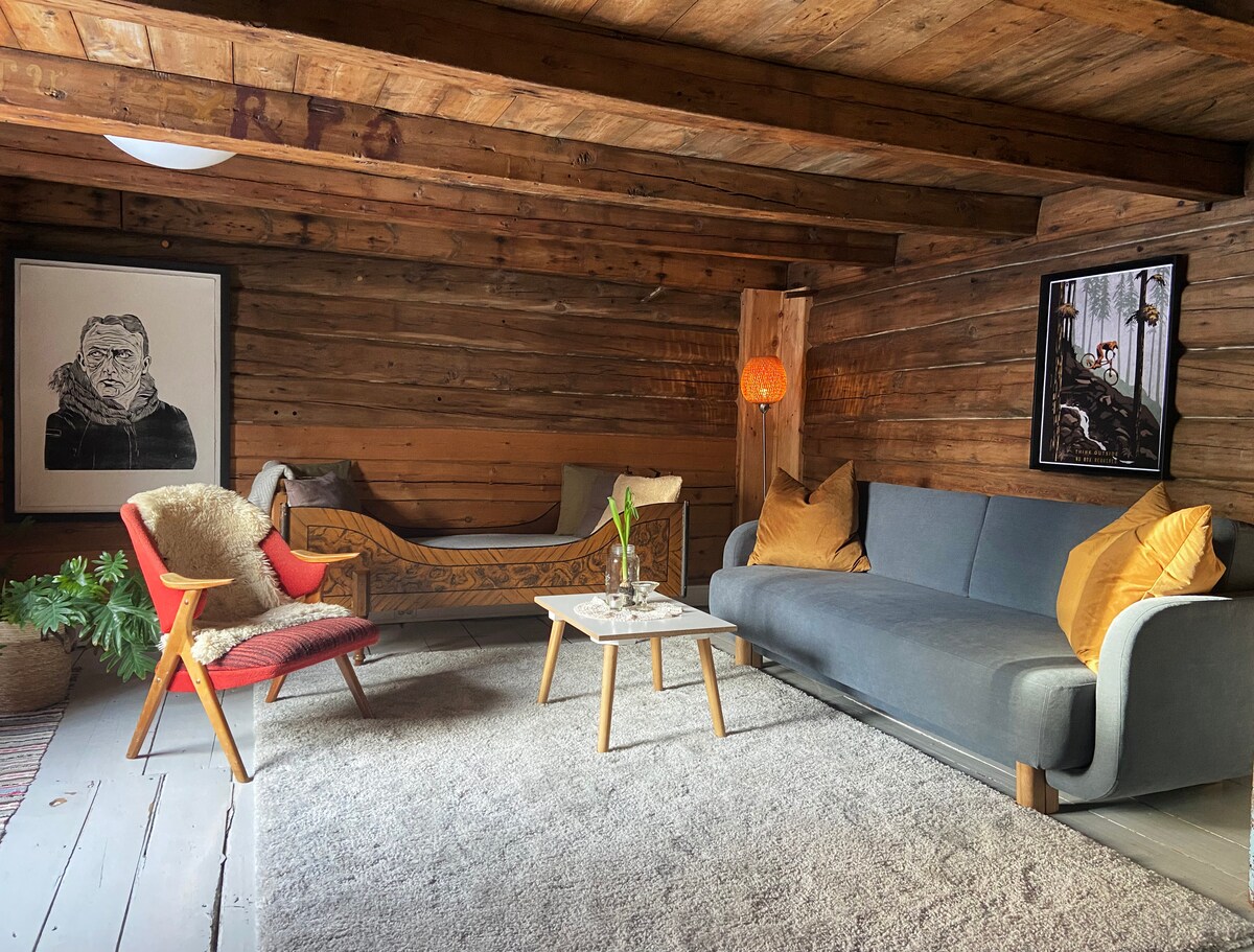 Viva en una pieza única de la historia de Røros, en una casa de madera de 120 metros cuadrados donde cien años de historia se combinan con comodidades e instalaciones modernas. La ropa de cama, las toallas, la leña y la limpieza están incluidos para que su estancia sea lo más cómoda. Las paredes de madera, los suelos de piedra y una gran chimenea crean un ambiente muy especial. La casa tiene dos dormitorios, un salón, dos pequeños baños y una cocina totalmente equipada con chimenea, fogones, lavavajillas y nevera.