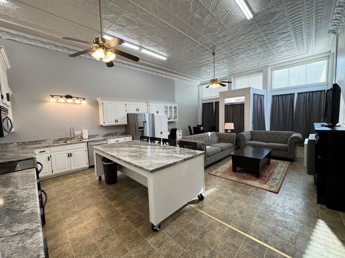 Observa cómo se desarrolla el mundo moderno debajo de ti mientras bebes tu café de la mañana con vistas a la histórica Main Street, en Council Grove, Kansas. Detrás de las ventanas de vidrio originales de 1884 de 10 pies de altura, tendrás un asiento en primera fila para todas las atracciones del centro de la ciudad. Siéntate en la suite de dos dormitorios del segundo piso y planea tus aventuras de un día mientras te dejas llevar a una época más lenta. Diseñada en honor a la primera jefa de la nación Kaw, la jefa Lucy, esta habitación está situada a pocos pasos de los principales sitios históricos.