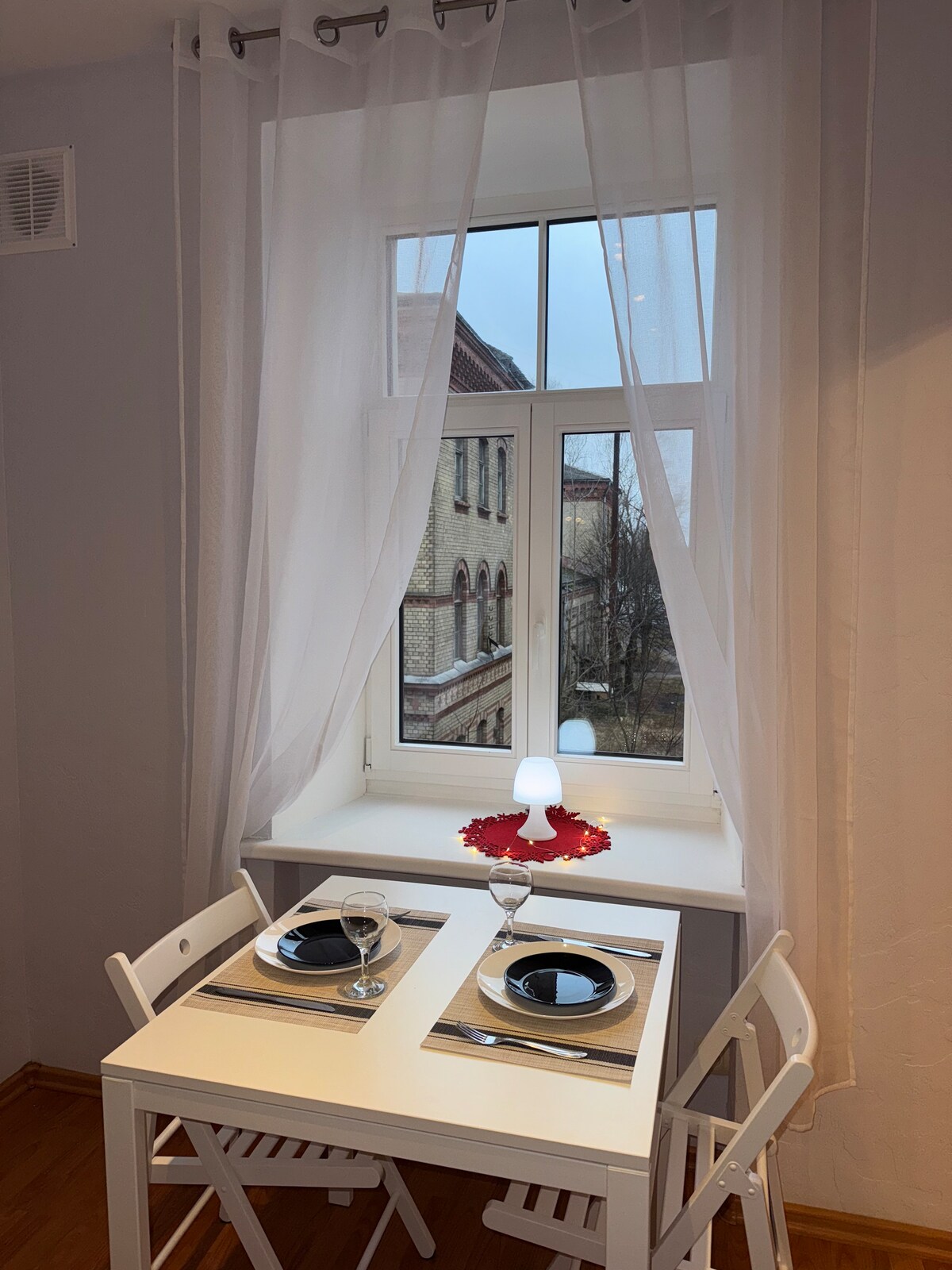 Elegante apartamento con una ubicación fantástica. El casco antiguo de Riga está a 10 minutos a pie, la Biblioteca Nacional de Letonia está justo enfrente. Este espacio elegante y cómodo es perfecto tanto para viajeros de placer como de negocios. El apartamento, ubicado en la planta baja, cuenta con un acogedor dormitorio. El sofá del salón se puede transformar fácilmente en una cama tamaño queen, lo que hace que el apartamento sea adecuado para un máximo de 4 huéspedes. La cocina está equipada con todos los electrodomésticos que necesitas para preparar tus comidas favoritas.