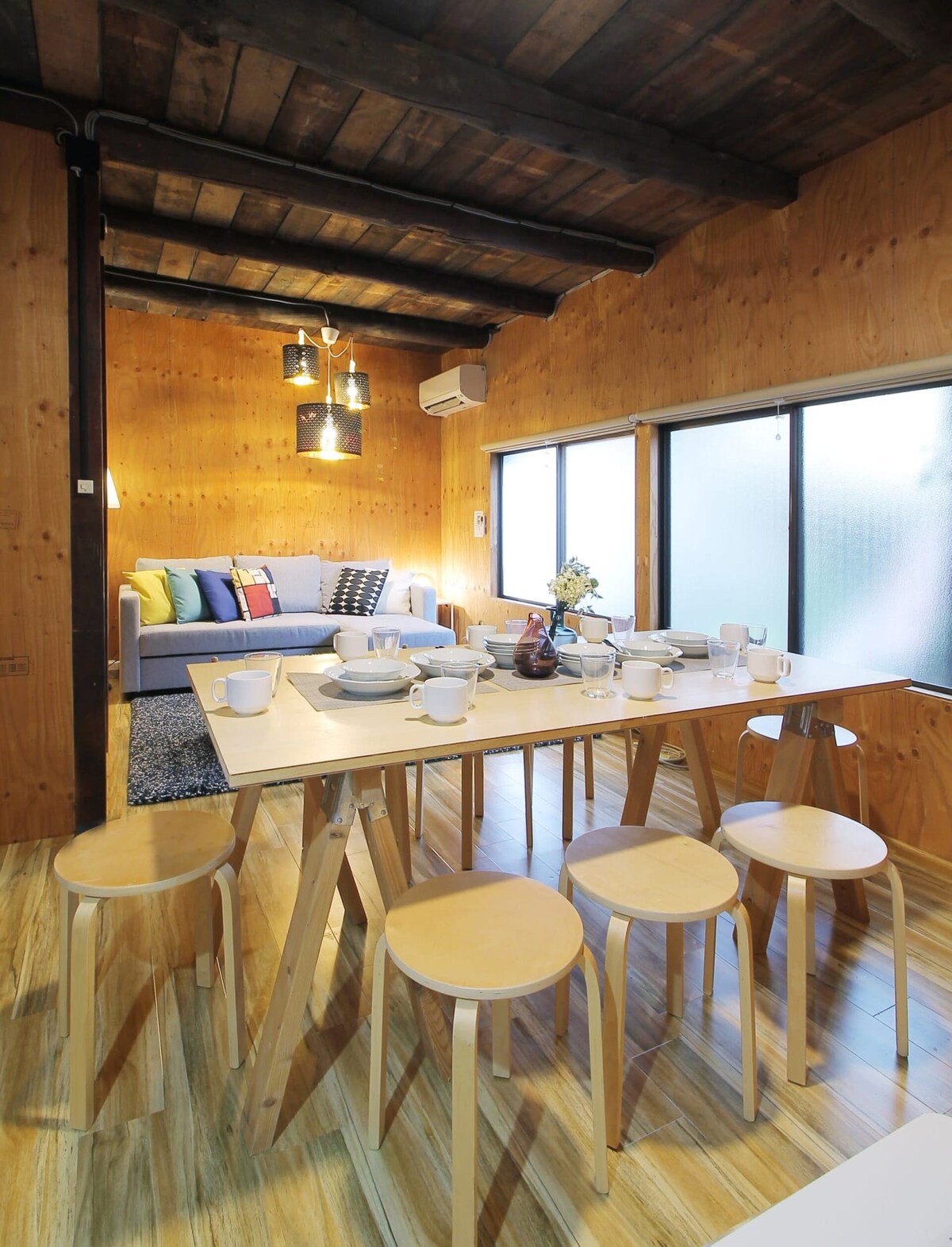 67sqm 1 BR apartment. 10 mins walk to Hiroshima Sta. conveniently location with nearby restaurants, supermarkets and tourist spots. Stairs going to the 2nd floor which makes this place spacious for 11 adult. Complete with amenities. Kitchen with induction heating stove for your cooking experience. Washing machine with dryer function. Separate toilet and bath. TV in the living room. Toiletries are provided. All you need for a comfortable stay. Please note: Cleaning is done one time only after y